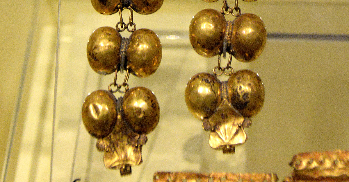 This marvelous pair of golden bracelets were probably found at Pompeii, Italy. Roman, 1st century CE. (National Museum of Scotland, Edinburgh, UK)