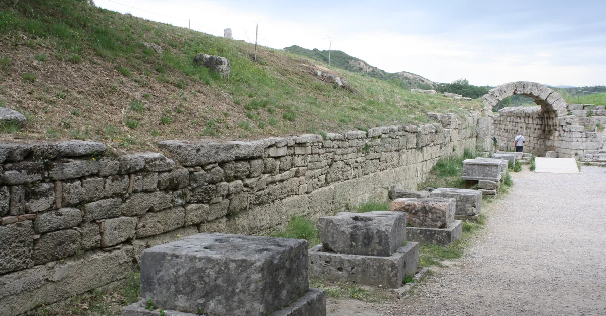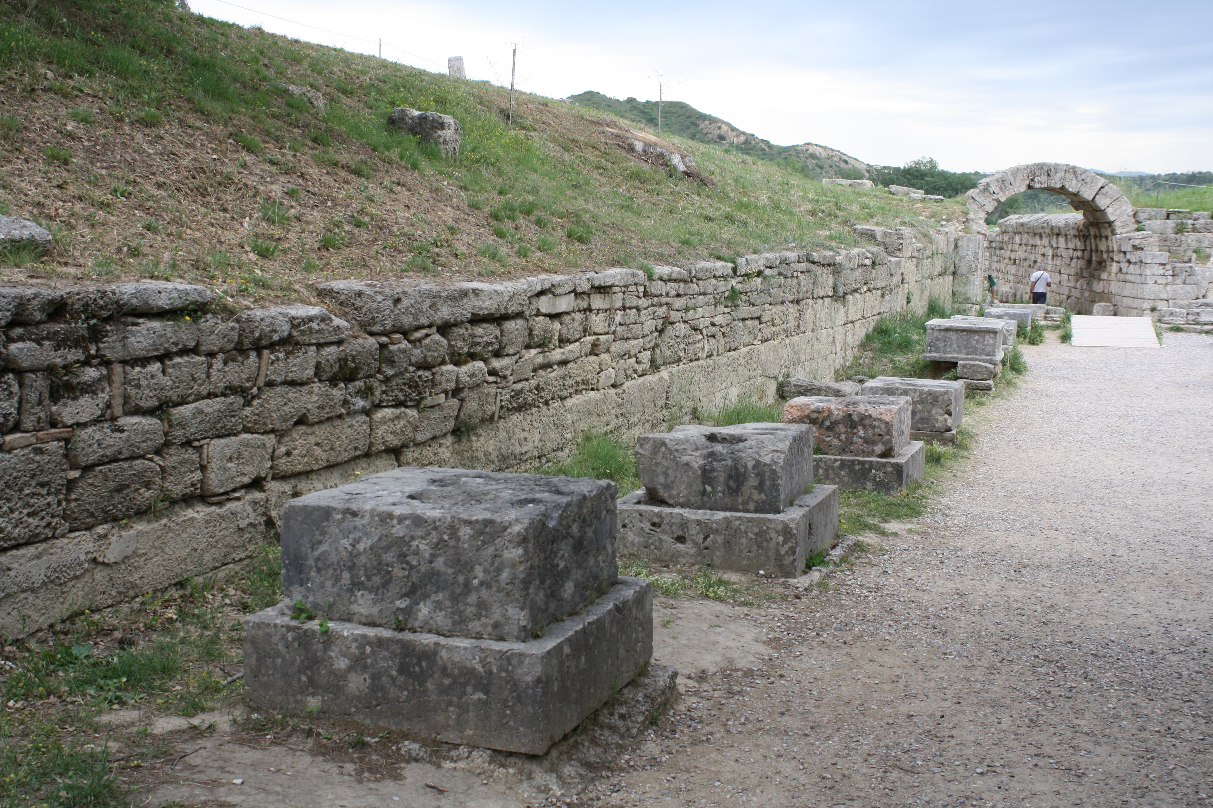 Stone bases of the Zanes of Olympia. These statues of Zeus were funded from fines from offending athletes in the Games. (4th century BCE).
