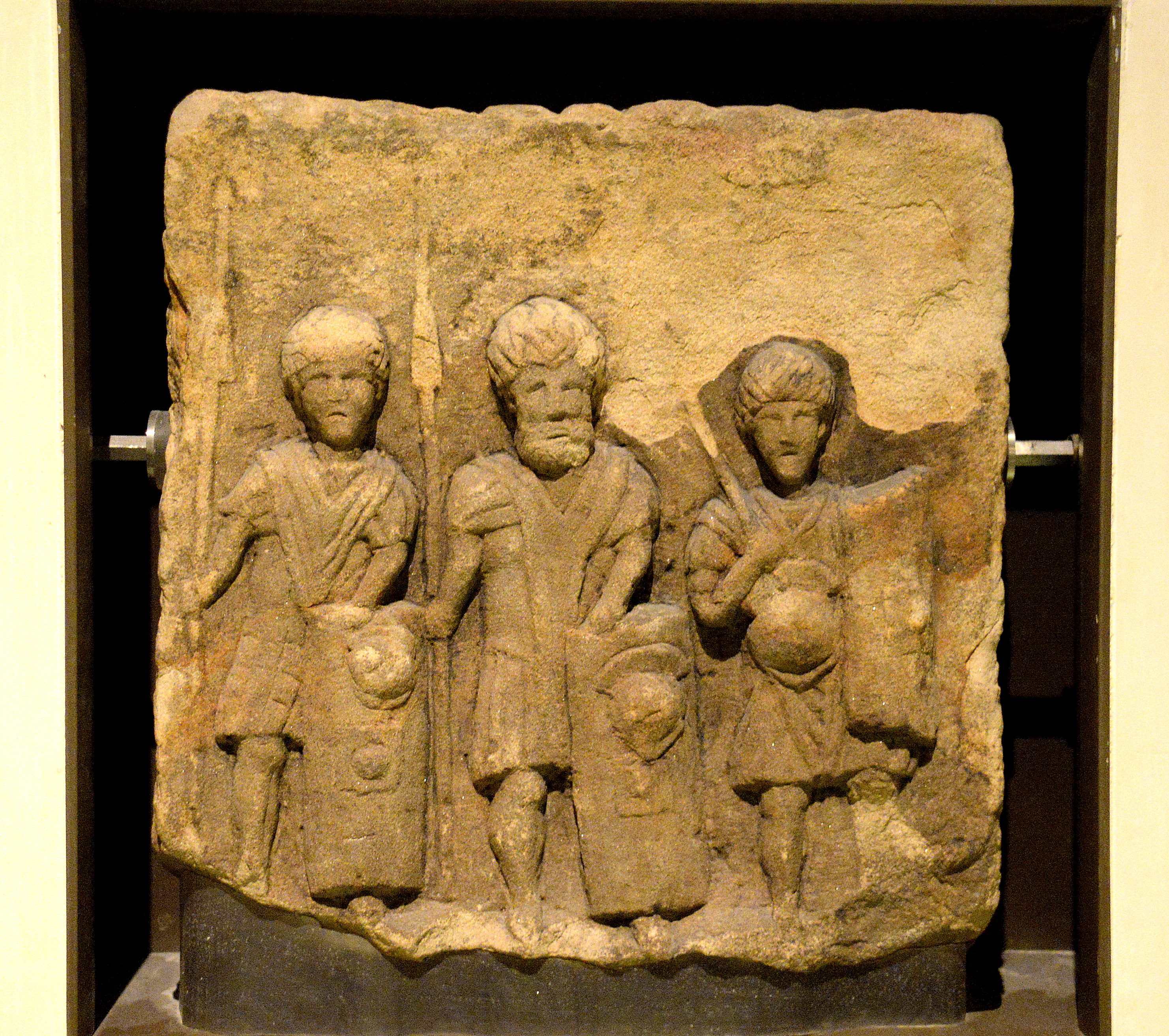 This fragment of a Roman gravestone shows three legionaries. From Croy Hill, Scotland, 2nd century CE. (National Museum of Scotland, Edinburgh, UK)