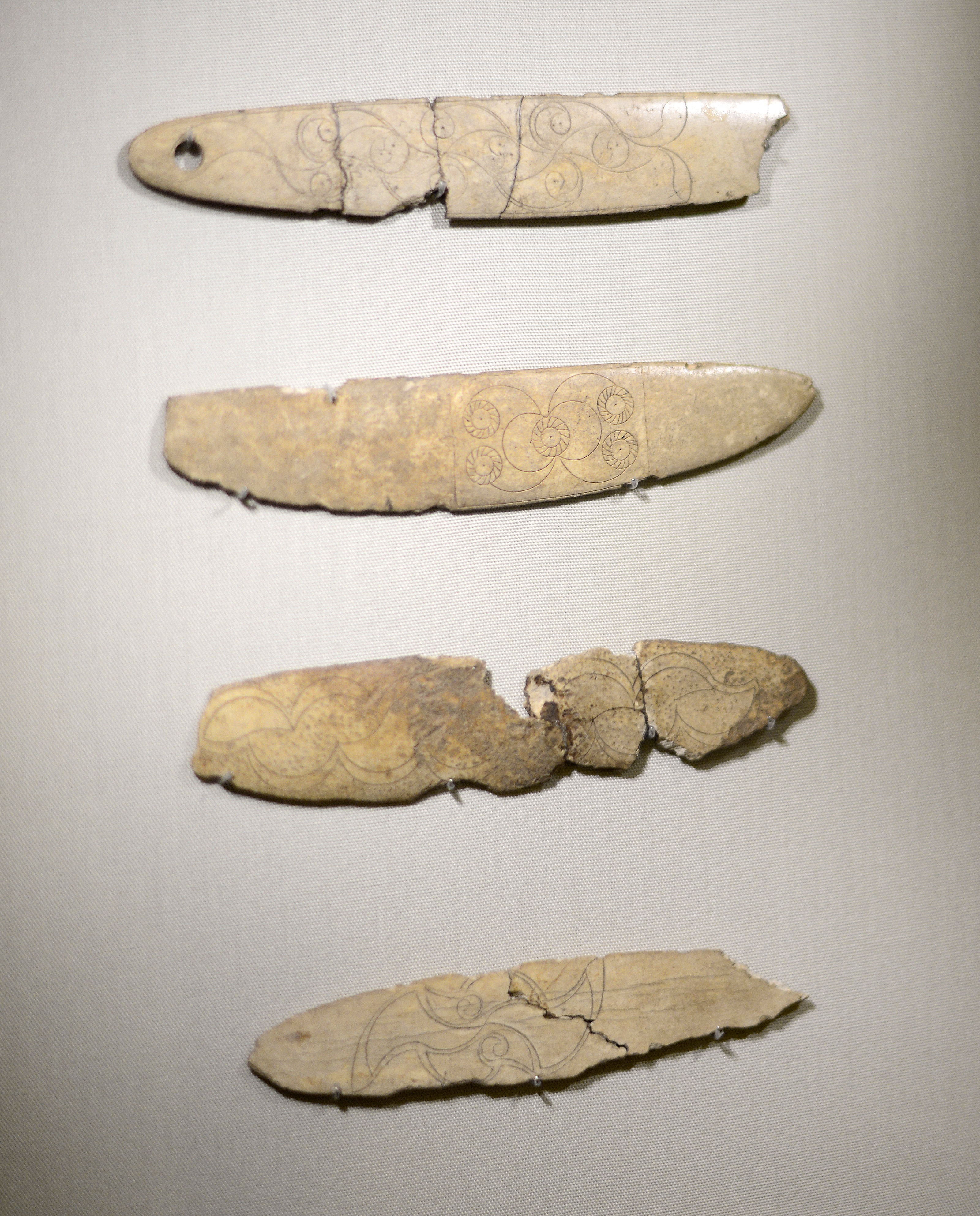 Bones decorated with carvings from Loughcrew, Co. Meath, Ireland, 2nd century BCE.