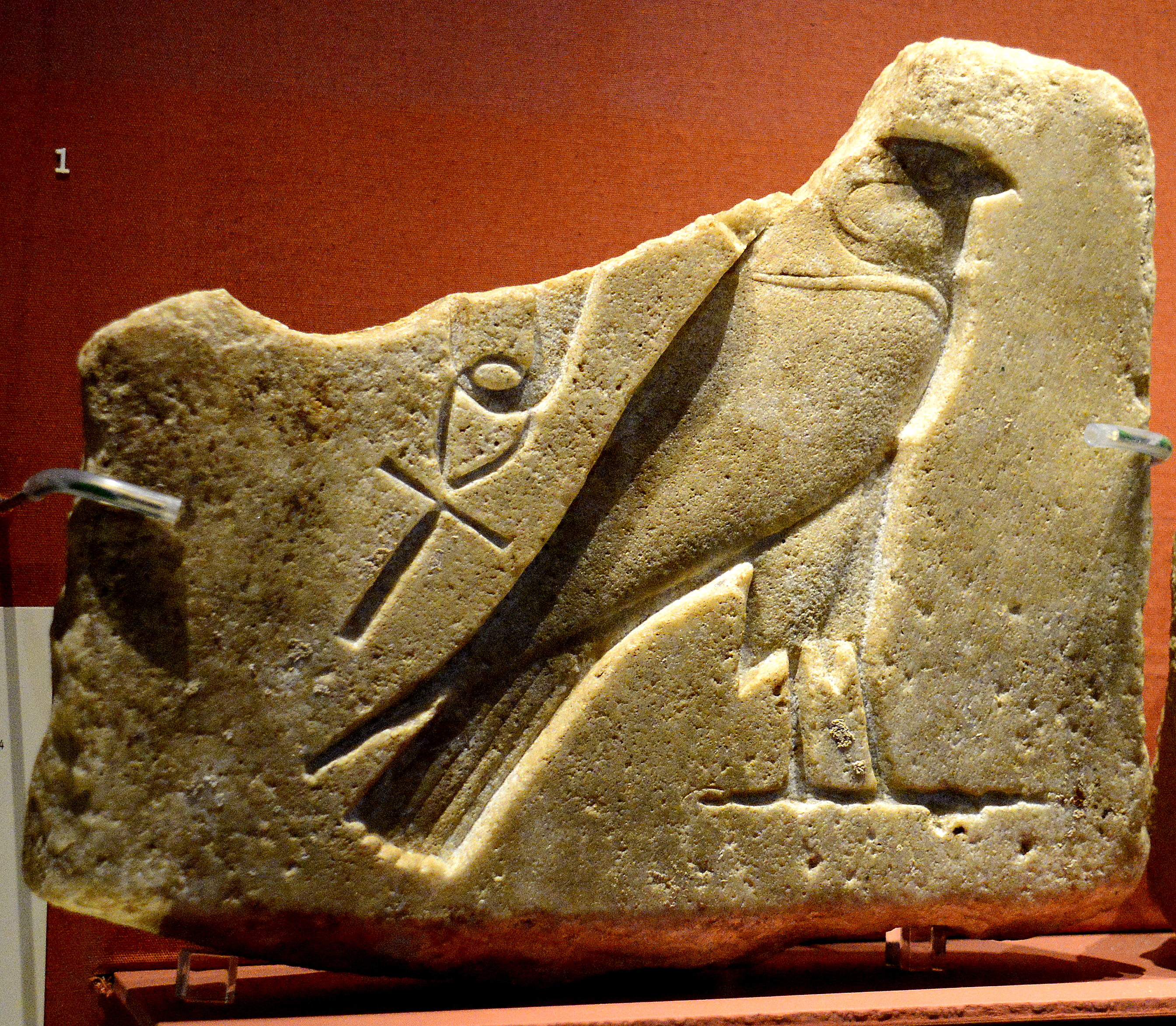 Quartzite plaque with a sculptor's trial image of the god Horus as a falcon. From Memphis, Late Period, after 700 BCE. (National Museum of Ireland-Archaeology, Dublin, Republic of Ireland)
