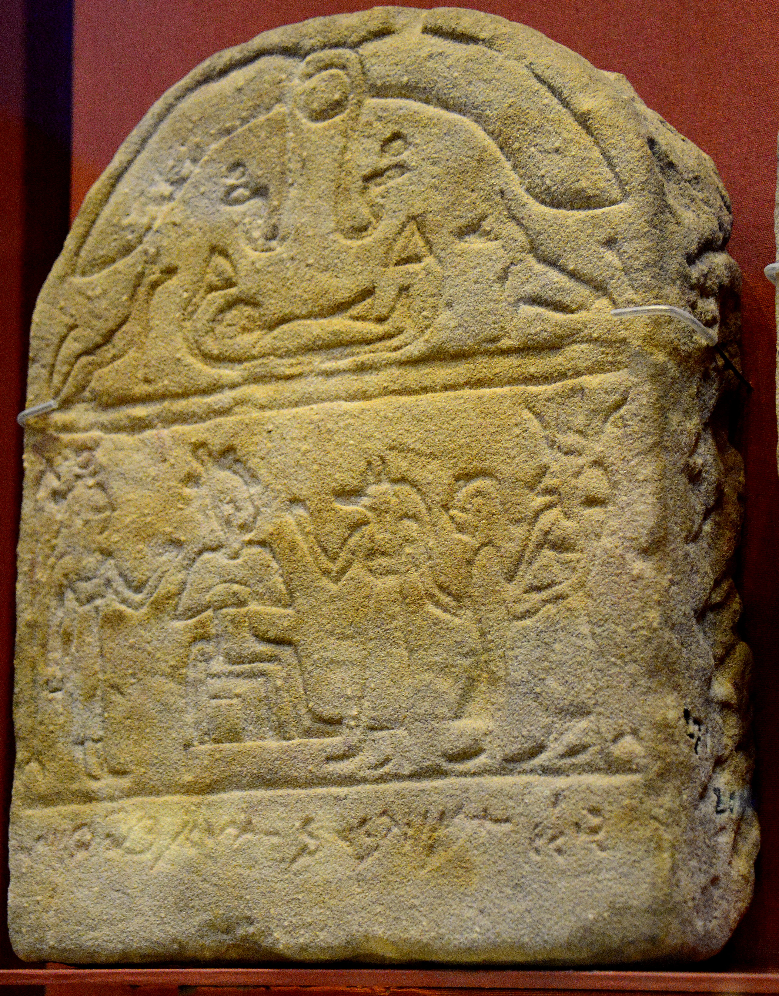 This stela shows that the deceased mummy is being conducted to Osiris by Anubis and Hathor. The inscription below the scene is in Demotic script. From Egypt, precise provenance of excavation is unknown. Ptolemaic period, 305-30 BCE. (National Museum of Ireland-Archaeology, Dublin, Republic of Ireland)