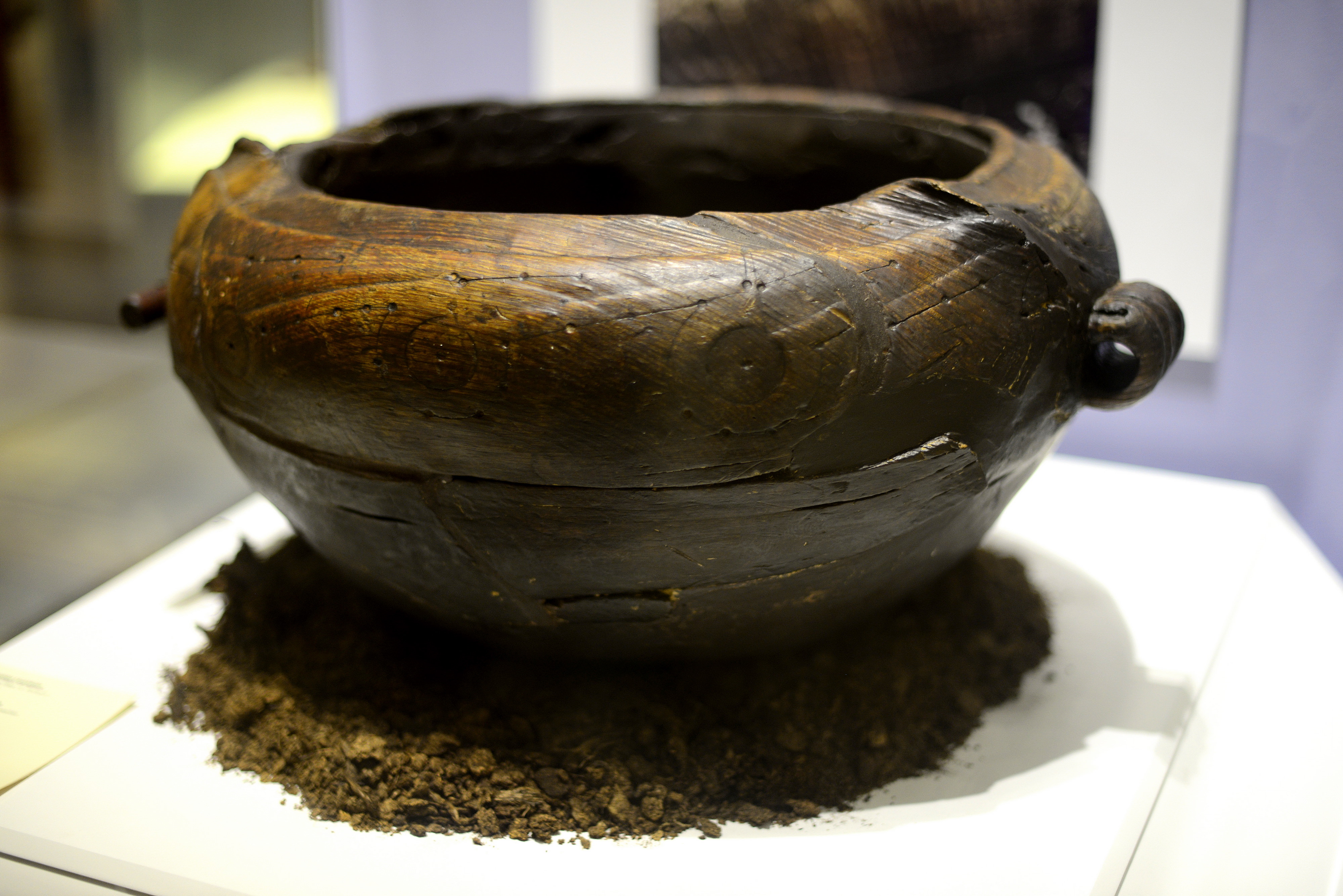 The Altartate Cauldron, made of poplar with yew handles, found in a bog near clones, Co. Monaghan, Ireland during turf cutting in 1933, dating to the 2nd century BCE. The find suggests the continuation of certain Later Bronze Age traditions into the Early Iron Age, although its form differs from that of Later Bronze Age cauldrons. A band of ornament below the rim resembles that found on certain Early Iron Age spears.