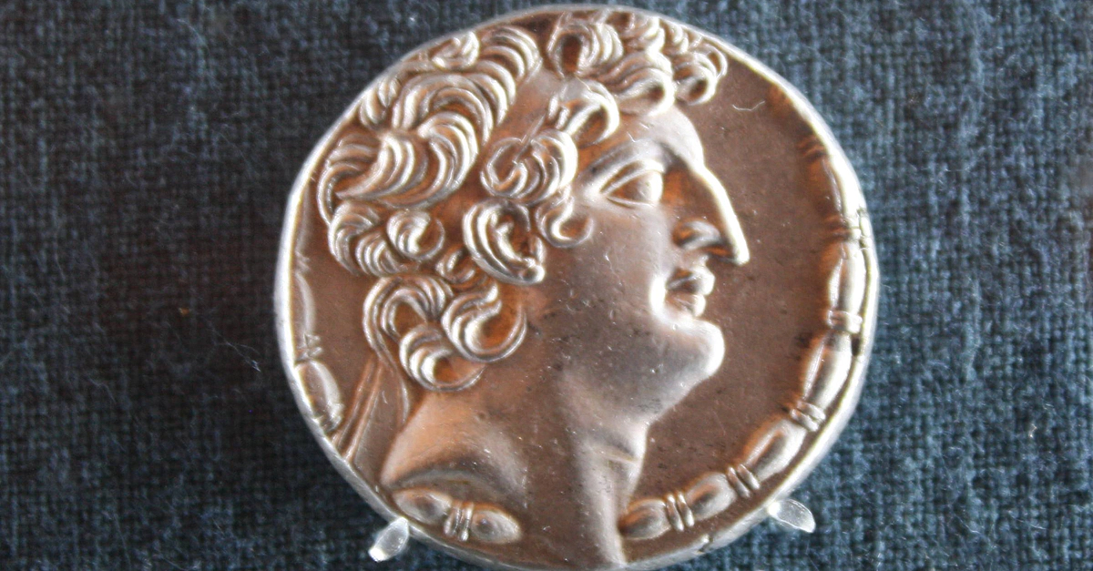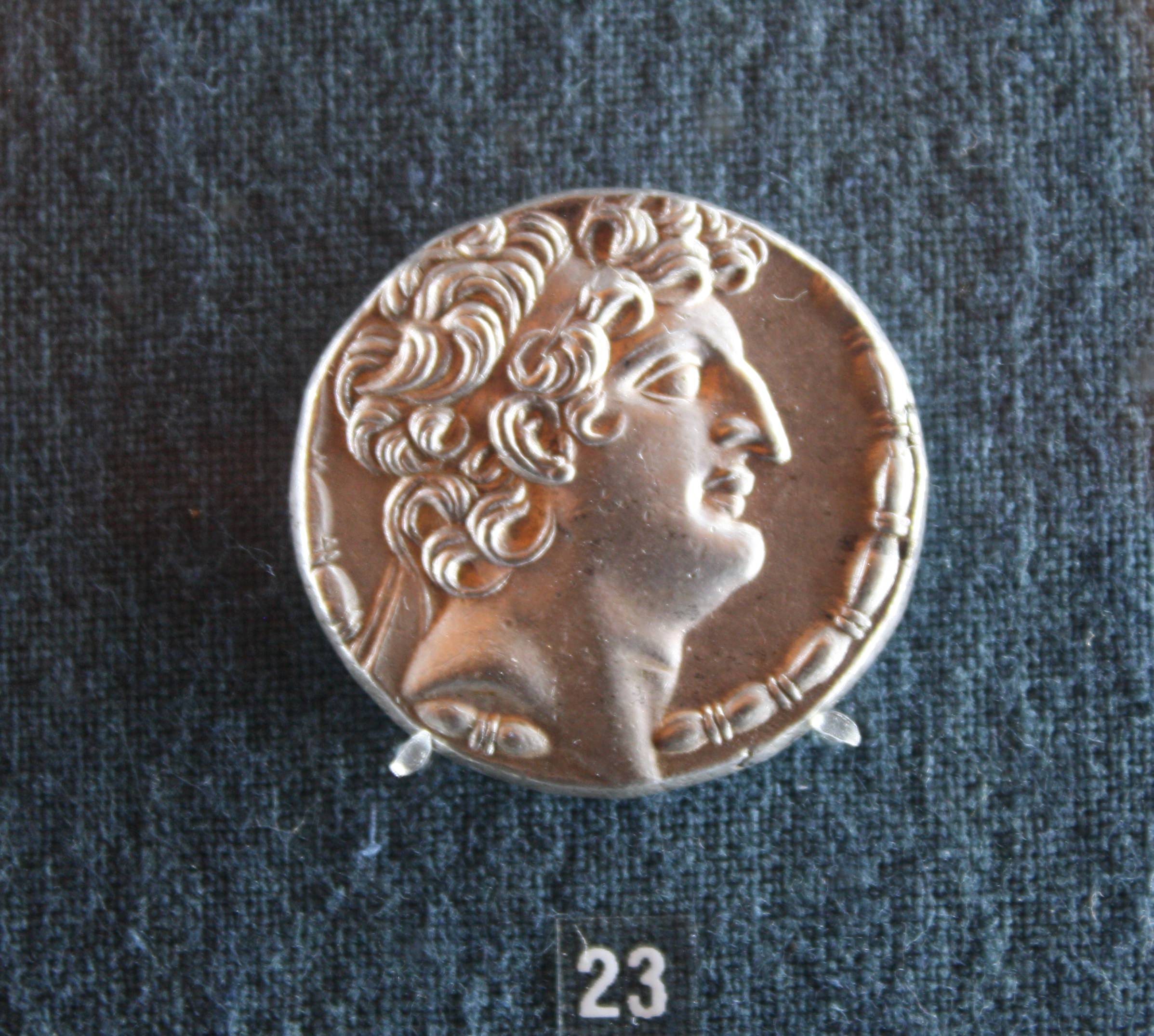 A silver tetradrachm depicting Antiochus VII Grypos, ruler of the Greek Seleucid Kingdom in 125 BCE. (Numismatics Museum, Athens)