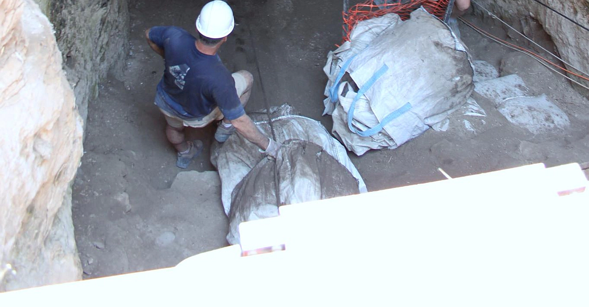 The entrance to the water system at Tel Gezer in central Israel. This photo was taken during the 2011 excavations of the water system by the New Orleans Baptist Theological Seminary. The water system is believed to have been built during the Middle Bronze Age by the city's then-Canaanite inhabitants.