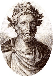 A portrait illustration of the Roman Comedy writer Plautus, active in the 2nd and 1st centuries BCE.