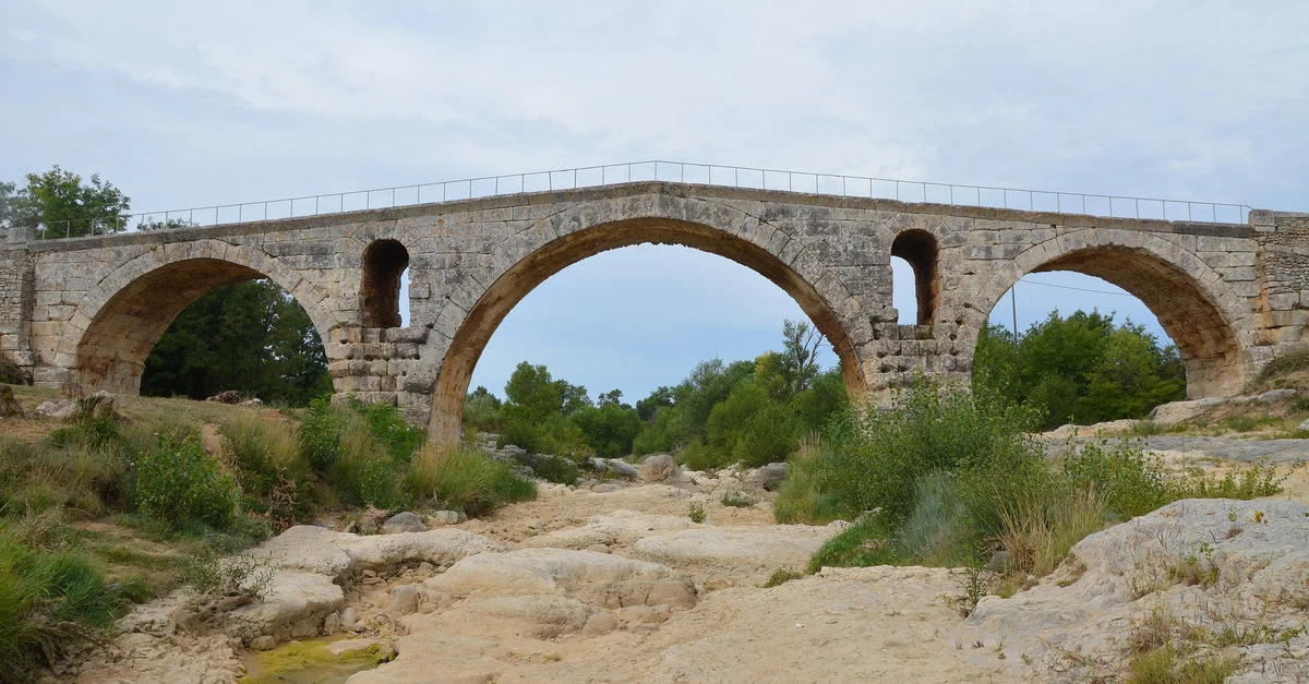 The Roman bridge Pont Julien in southern France is a three arched bridge built in 3 BCE over the Calavon river on the Via Domitia, an important Roman road that connected Italy and Spain through the Roman province of Gallia Narbonensis.
