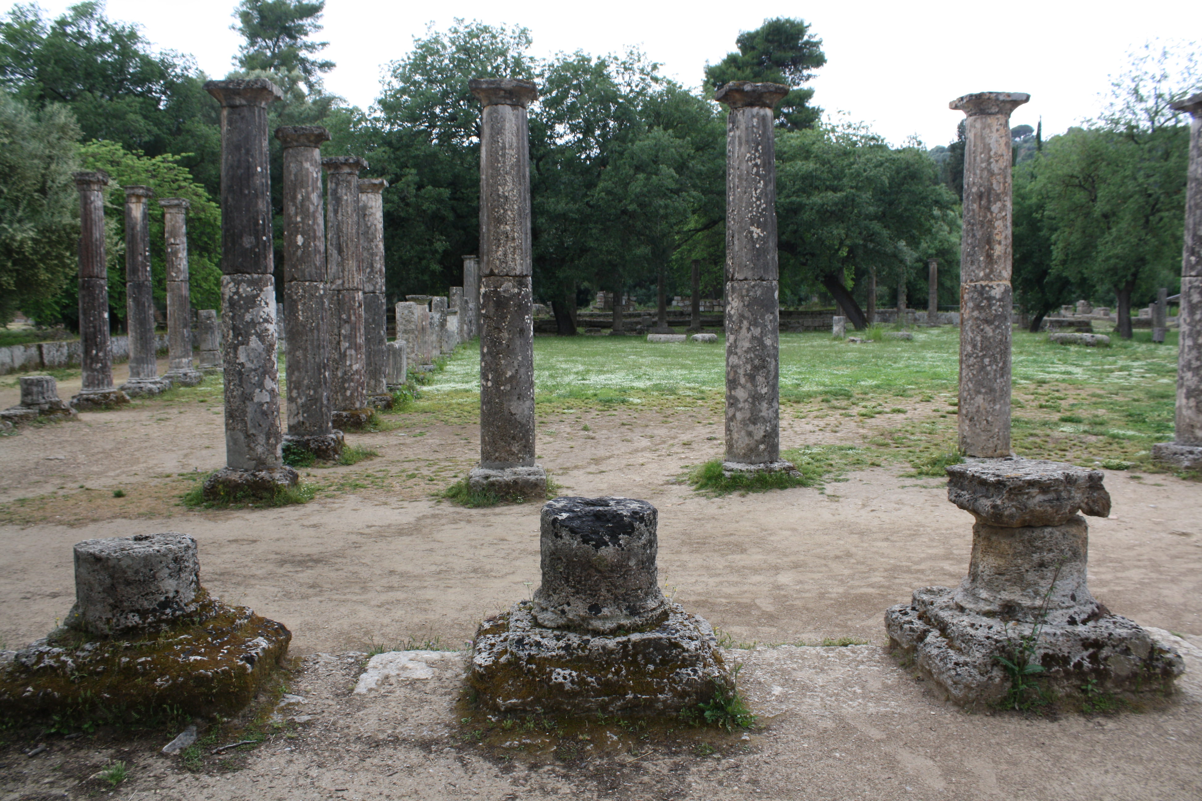 The Palaestra where athletes trained and lived before events (3rd century BCE). Originally, there were 72 columns in the stoas.