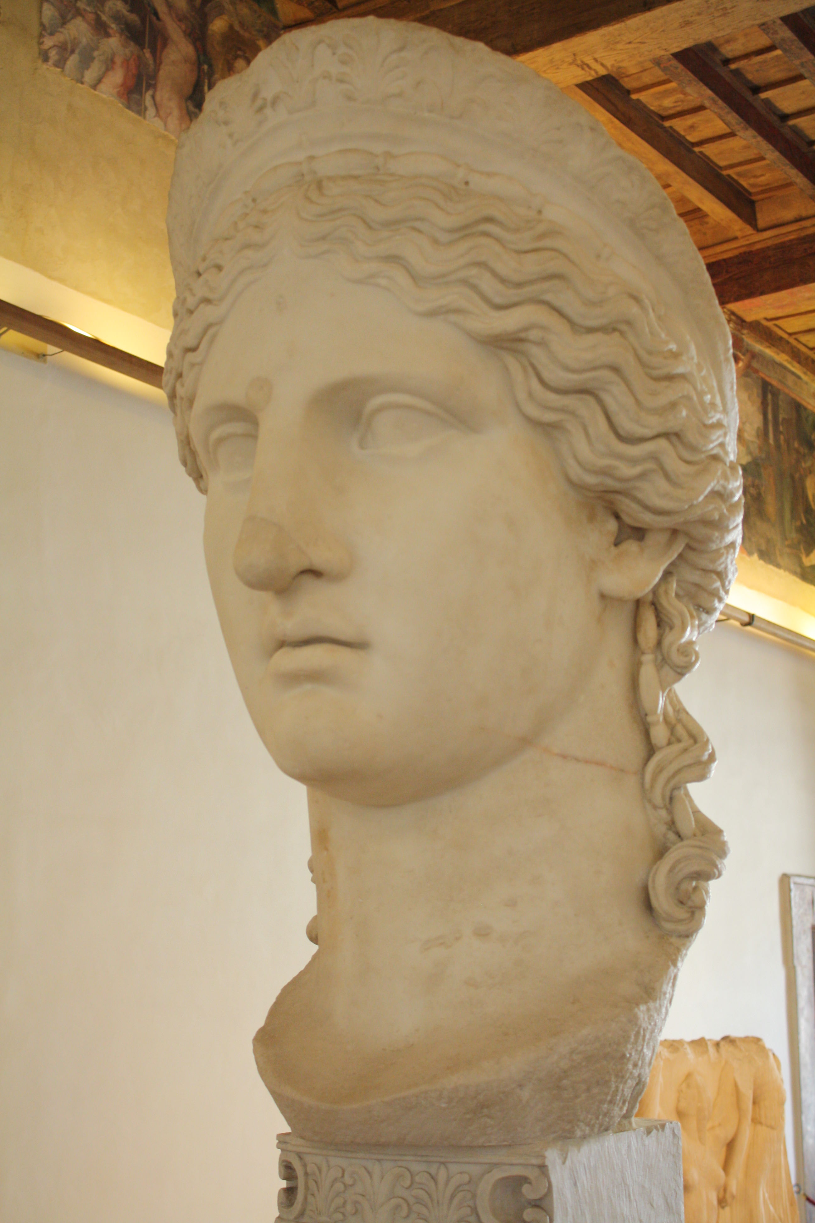 The Juno Ludovisi was once part of a colossal marble statue and has actually been idnetified by some scholars as either an idealized statue of Antonia Minor, the mother of Roman emperor Claudius or Livia, the wife of Augustus. (Palazzo Altemps, Rome)