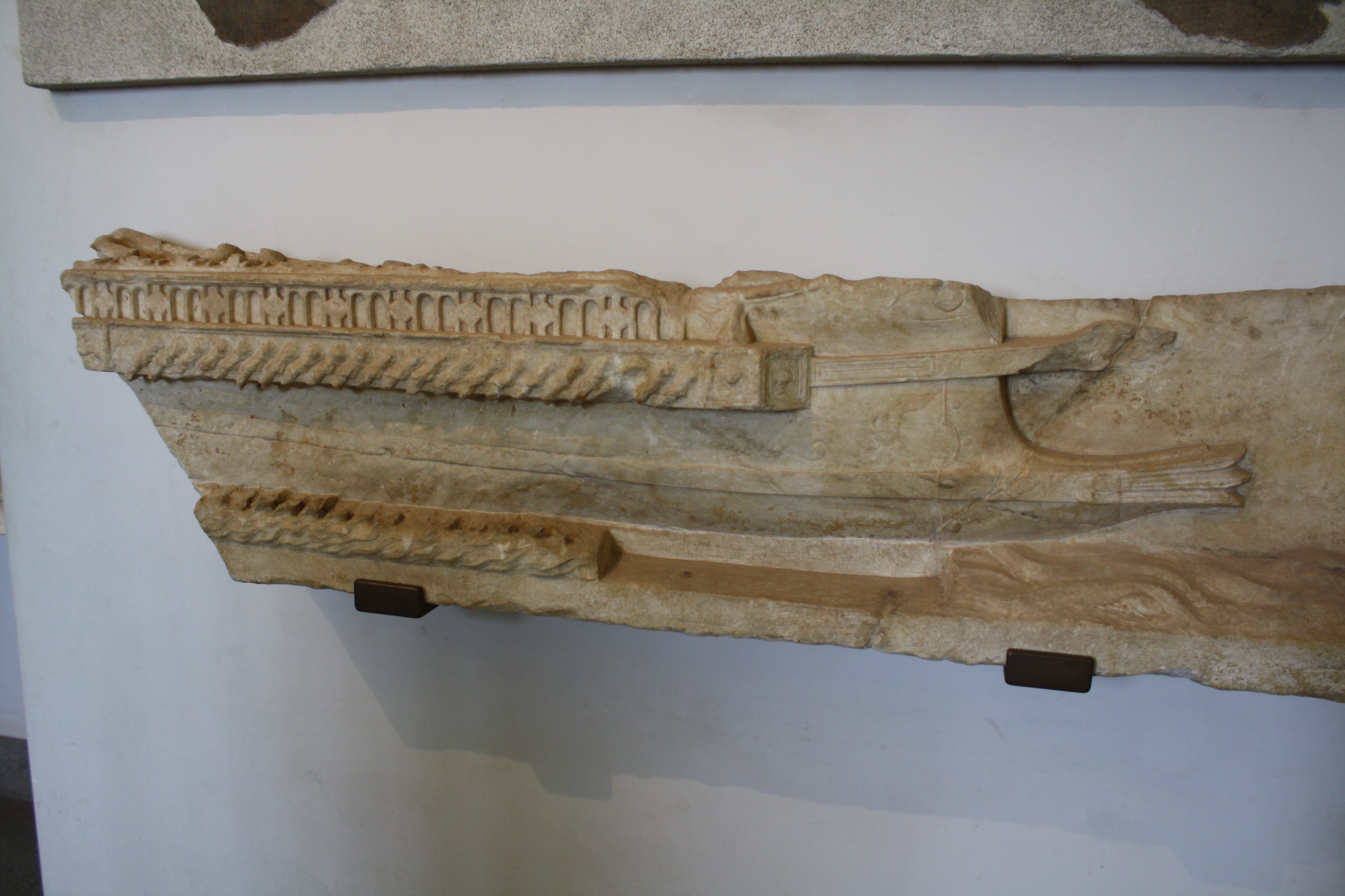 A marble relief depicting a Roman naval vessel with a ram on the prow. Augustan period from the Palatine, Rome. (Forum Museum, Rome)