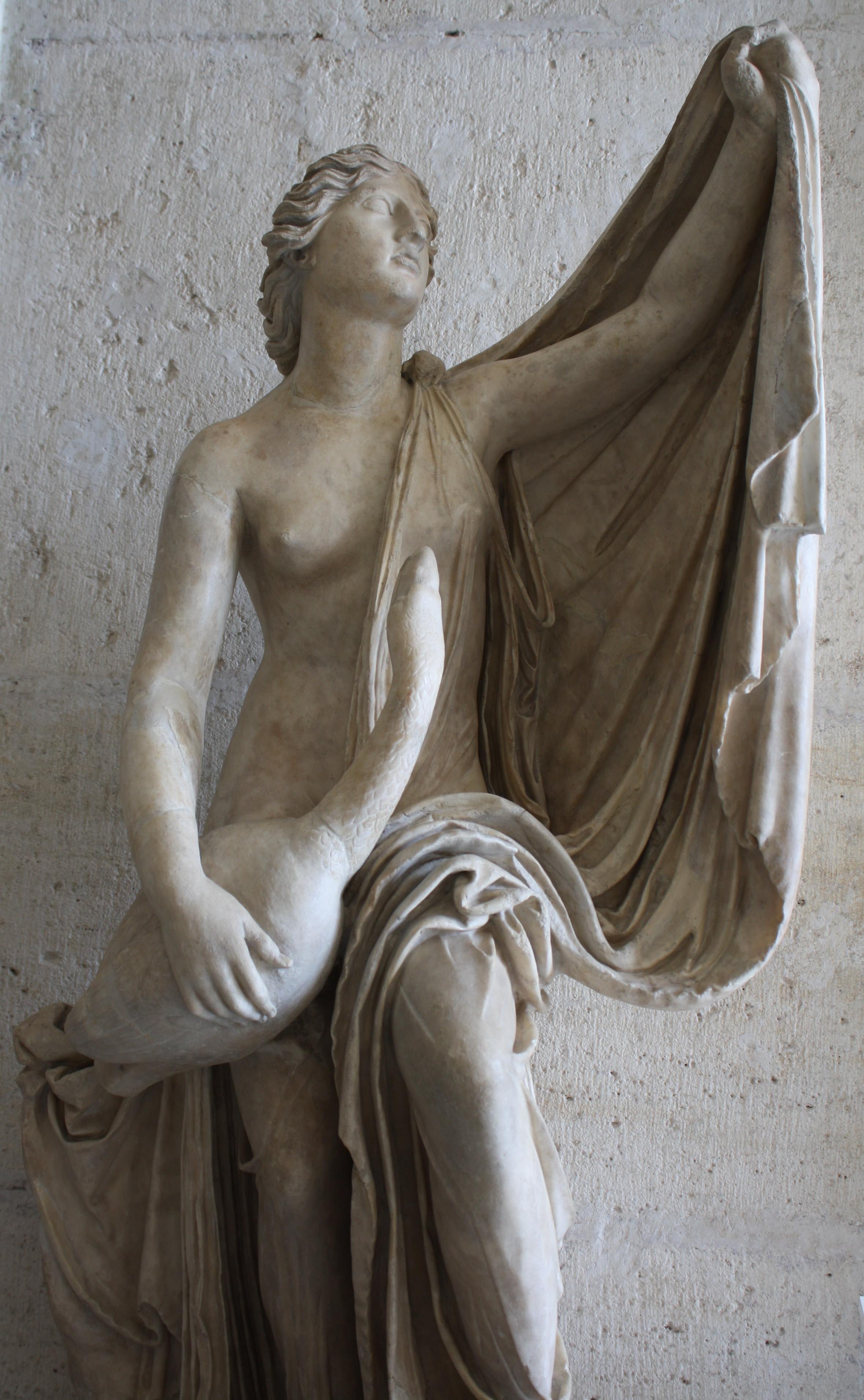 A Roman-period statue of Leda and the swan from Greek mythology. From a 4th century BCE Greek original by Timotheos. (Capitoline Museums, Rome)