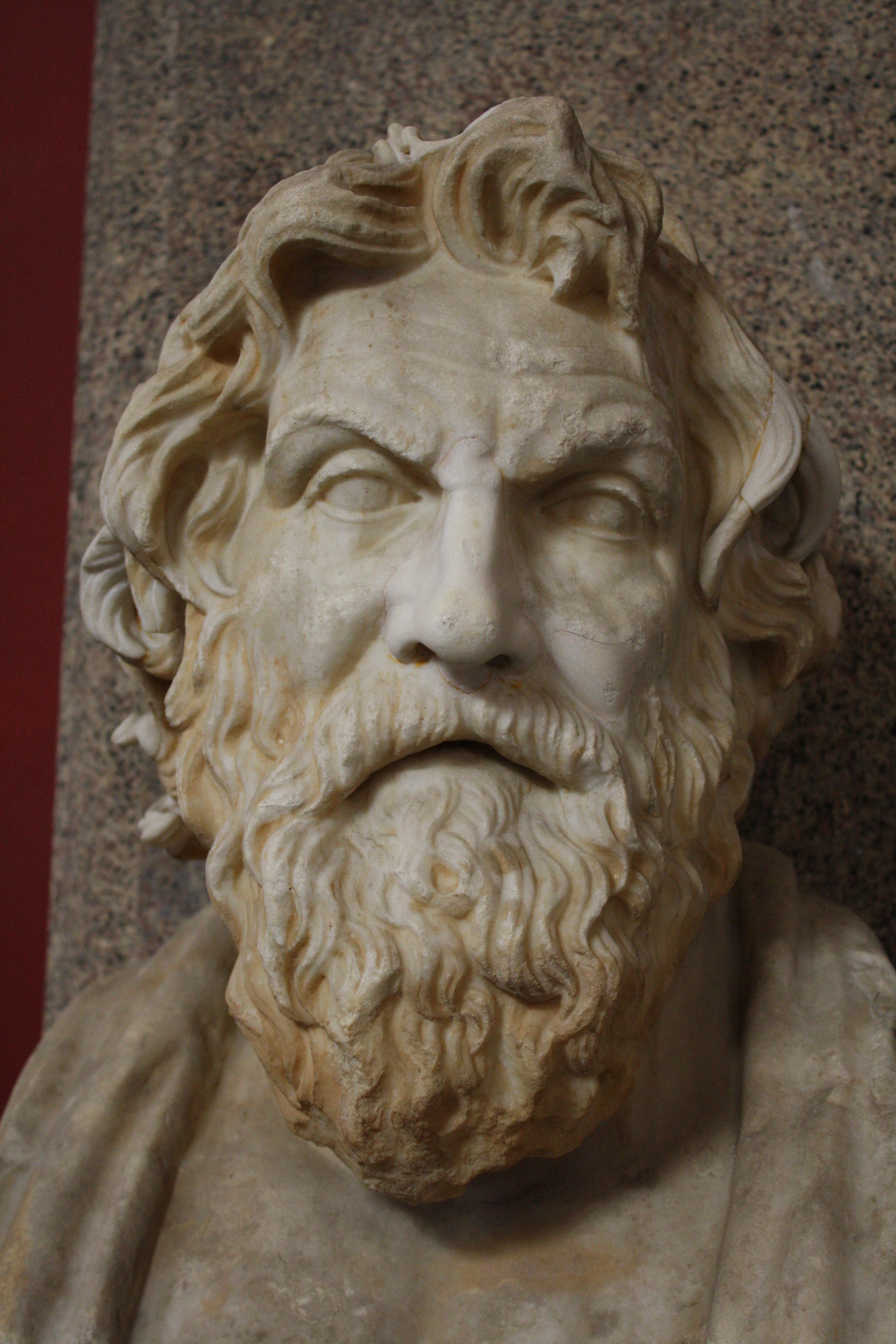 A portrait of the Greek philosopher Antisthenes (c. 450-370 BCE), founder of the Cynic school of philosophy. 2nd century CE Roman copy of a 3rd century BCE original by Phyromachus. (Vatican Museums, Rome)