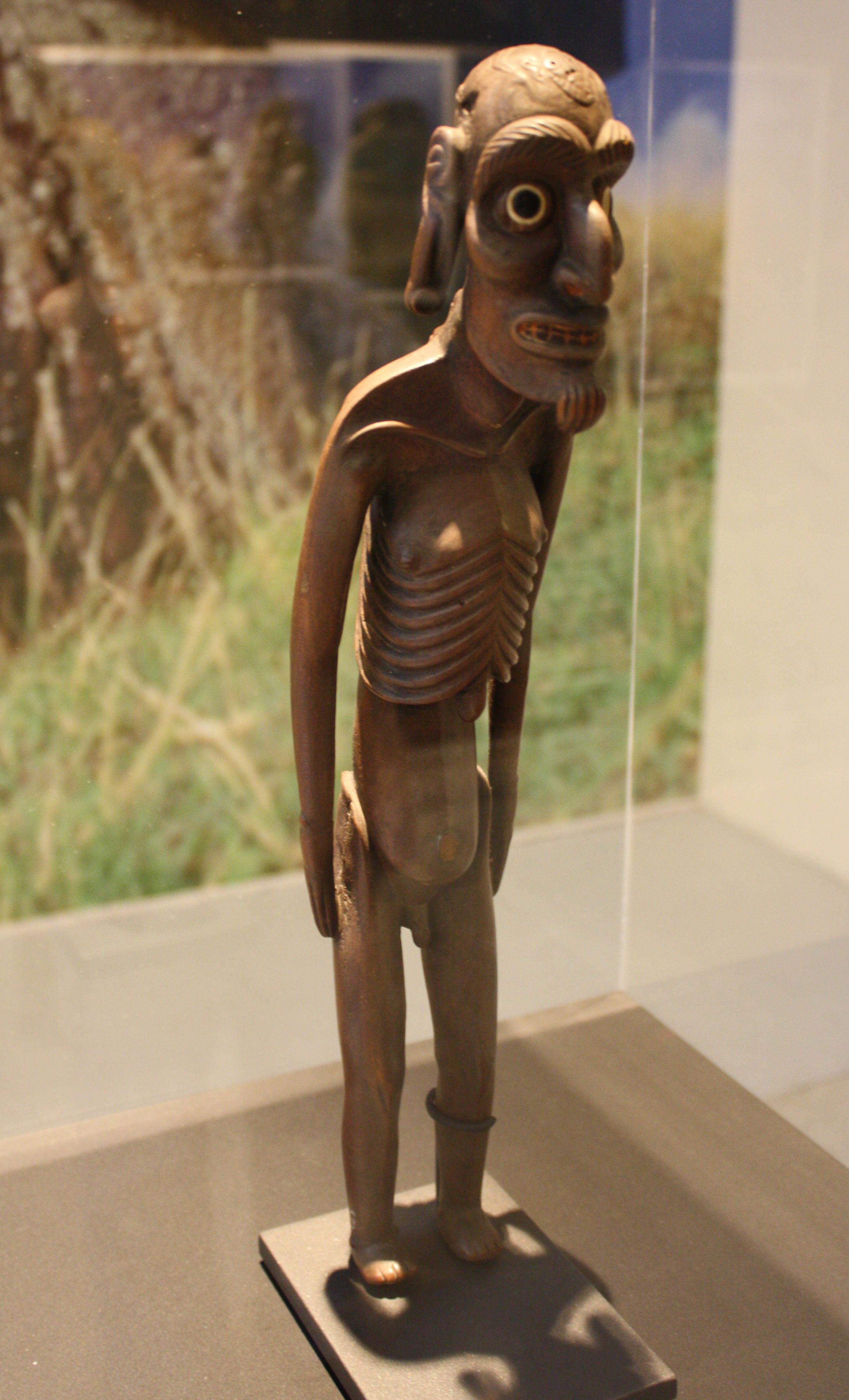 Moai Kavakava, Rapa Nui (Easter Island). Wood, bone, and obsidian. 42.5 cm high. Collected in the 18th century CE. (Vatican Musems, Rome)