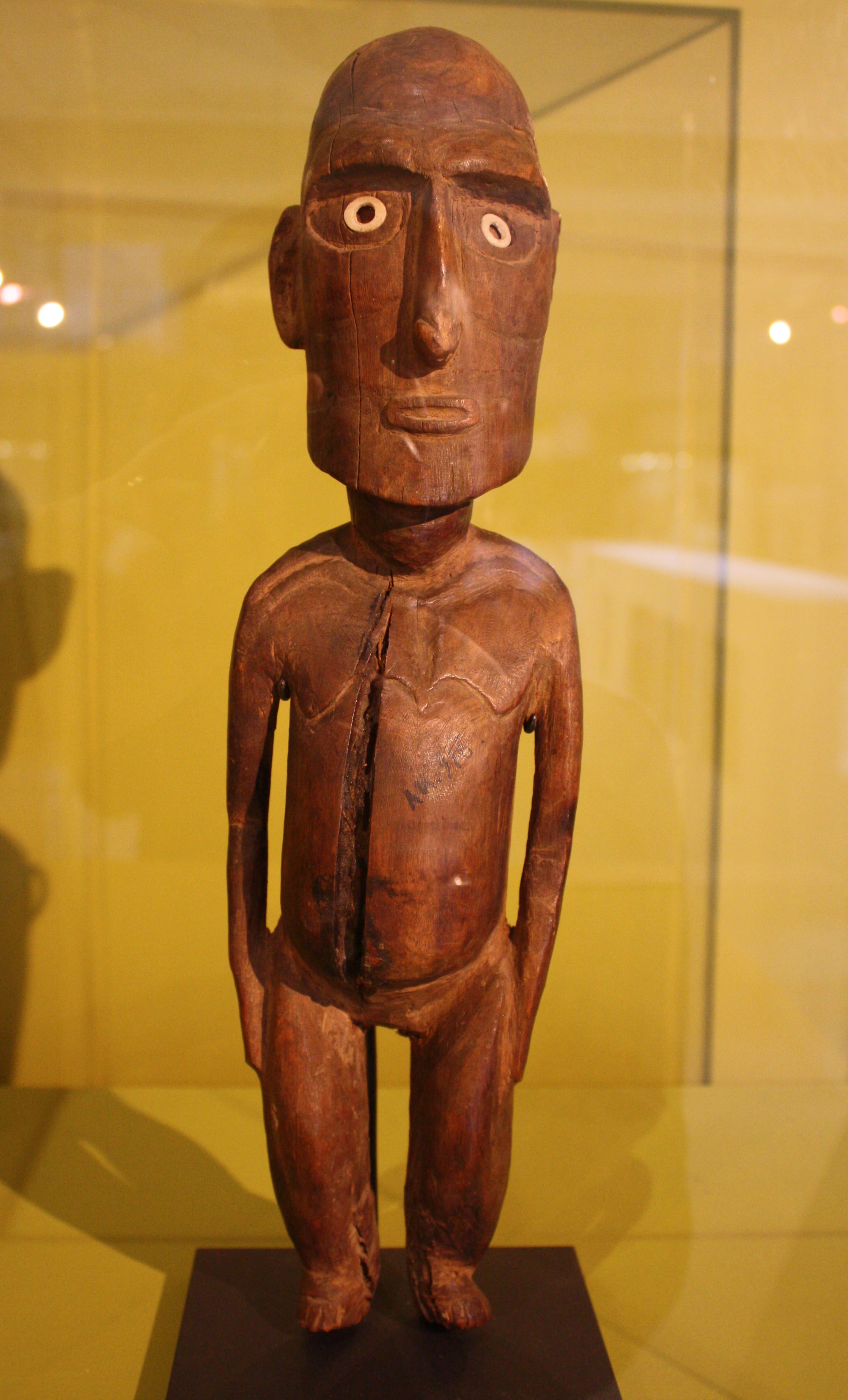 Moai tangata, Rapa Nui (Easter Island). Wood, bone, and obsidian. Collected in 1892 CE. Height: 46 cm. (Vatican Museums, Rome)