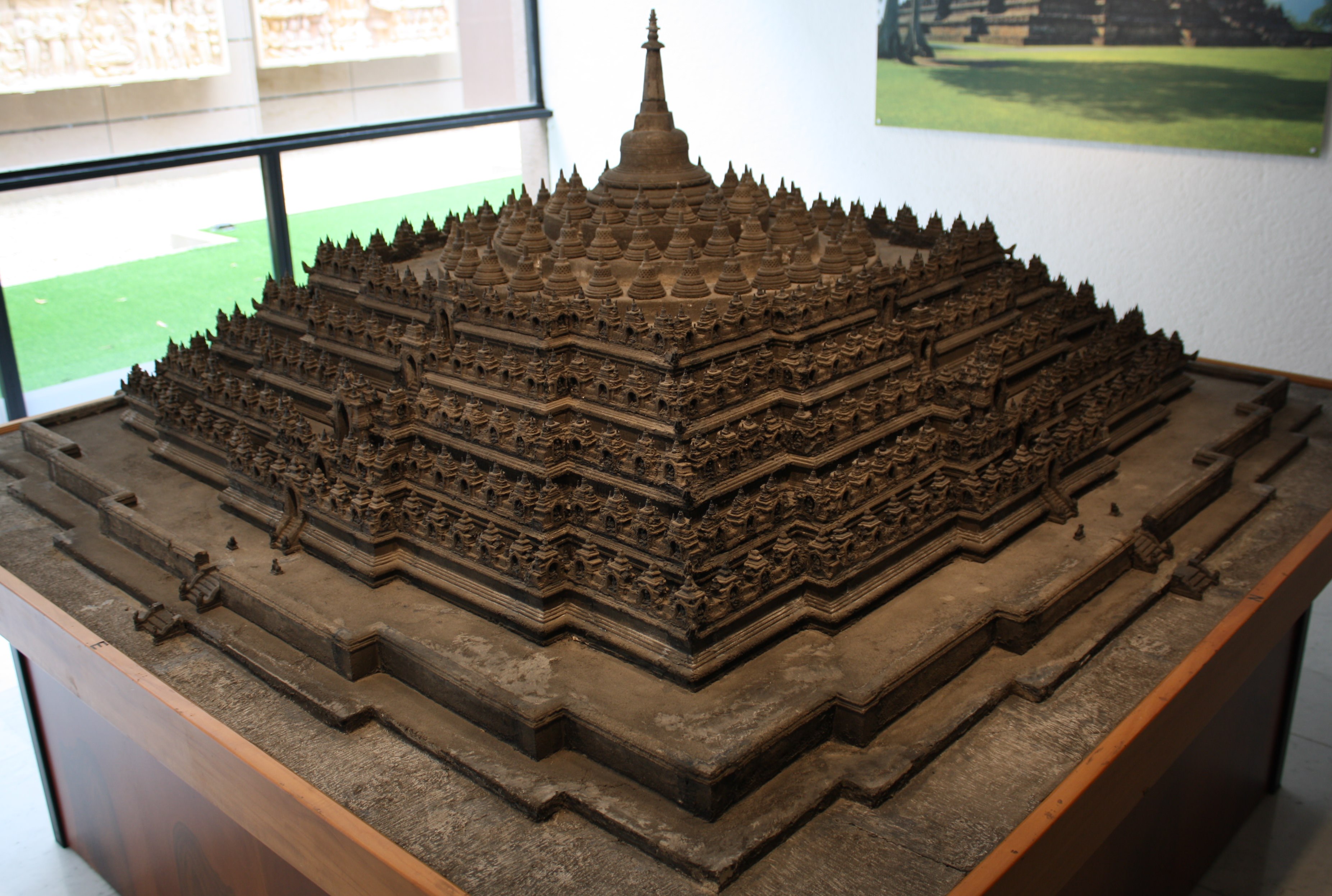 A model of the Borobudur Buddhist temple in Java, Indonesia. The temple was built in the 8th century CE. (Vatican Museums, Rome)