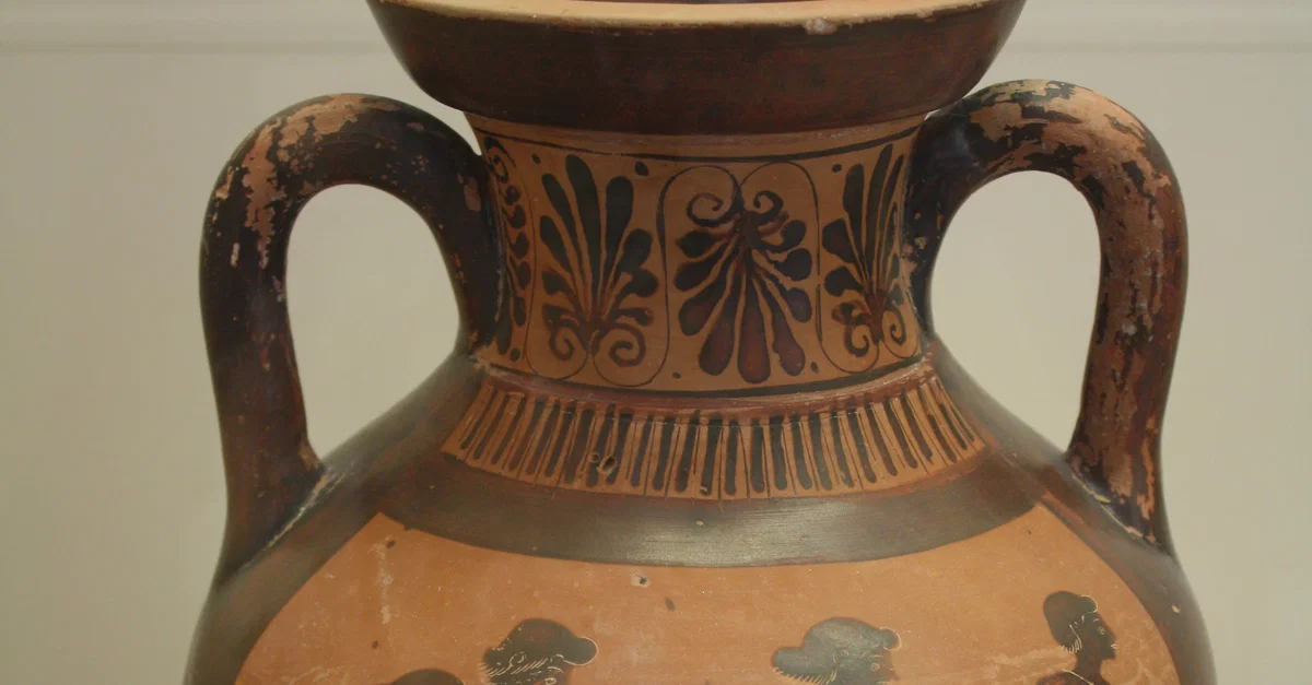 Attic black-figure column crater depicting a foot race (510-500 BCE). Olympia Archaeological Museum.