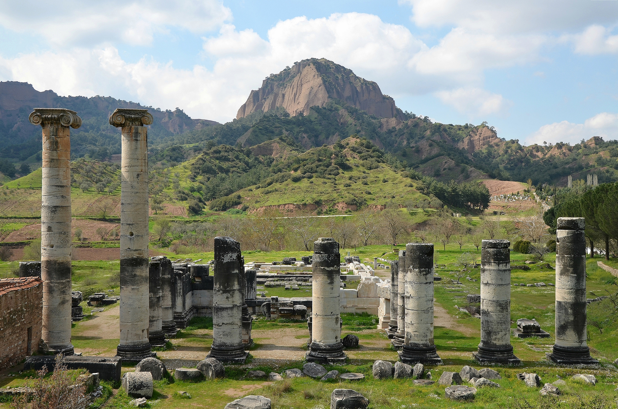 The ruins of the Temple of Artemis in Sardis in Lydia (modern-day western Turkey), originally built by the Greeks in 300 BCE and later renovated by the Romans in the 2nd century CE. The Temple of Artemis in Sardis was the fourth largest Ionic temple in the ancient world.