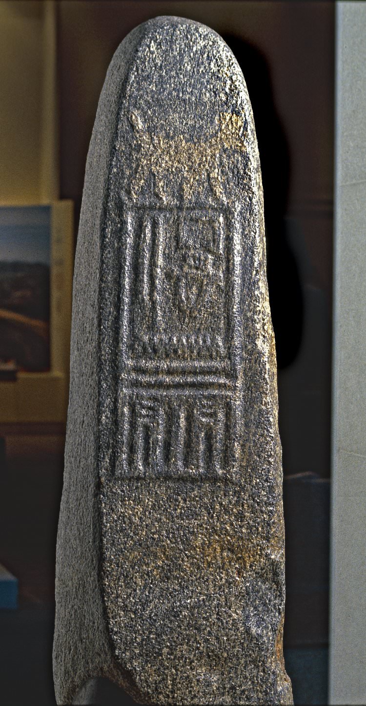 Granite stela of Peribsen, 2nd Dynasty ruler of Egypt. The inscription consists of the serekh of Peribsen surmounted by the animal of Seth, the latter having been hammered out at a later date.