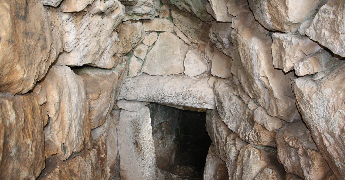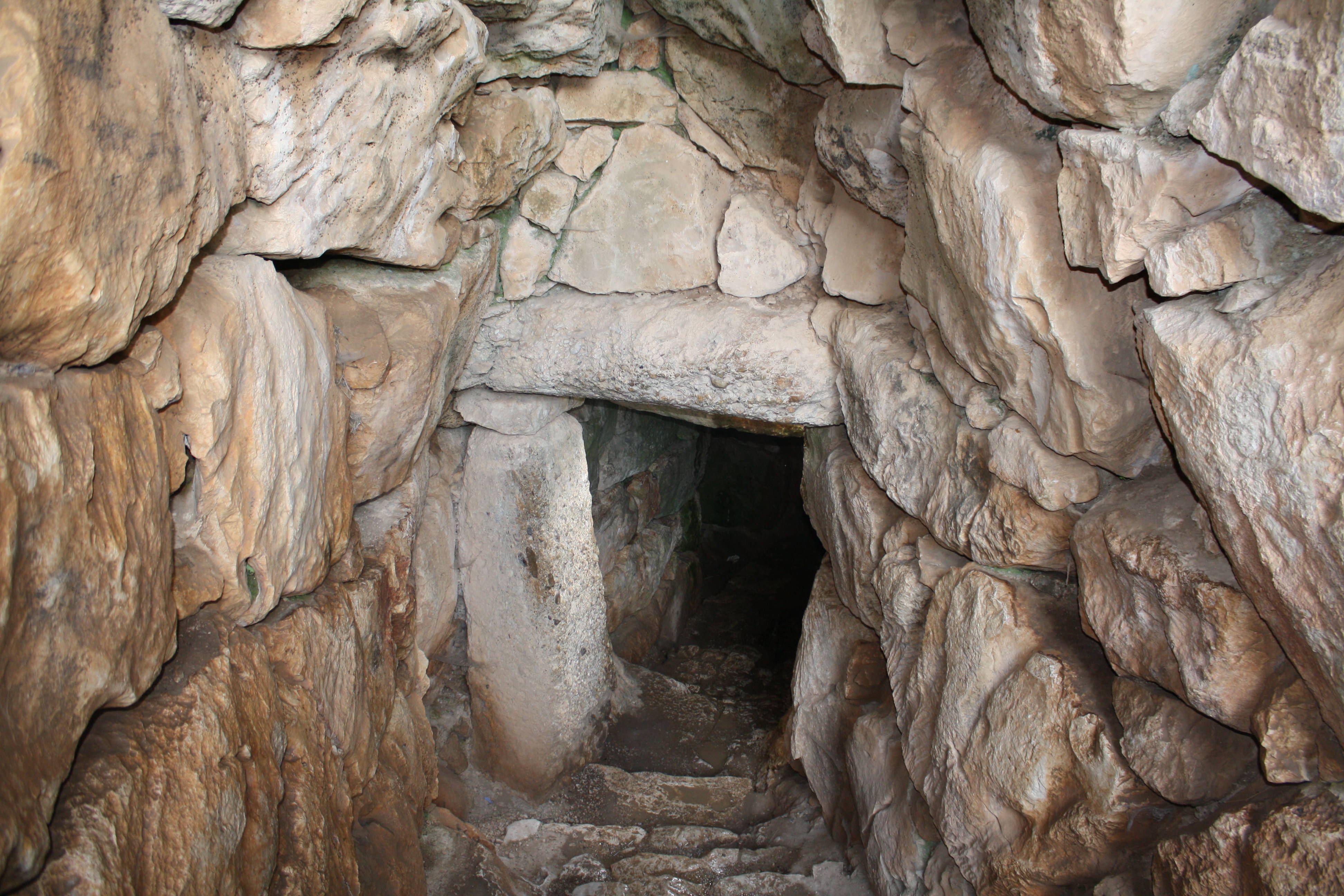 The inner entrance to the stepped tunnel (1200 BCE) which descends 18 metres to a subterranean well. The well is supplied via a stone aqueduct from a spring east of the citadel.