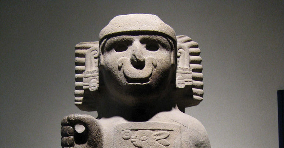 A sculpture of the Mesoamerican god known to the Aztecs as 2 Rabbit who often represented the pulque gods. These gods represented the alcoholic drink pulque and were also known as the Centzon Totochtin (400 Rabbits). 1100-1300 CE. (Poza Larga. Municipio de Papantla, Veracruz)