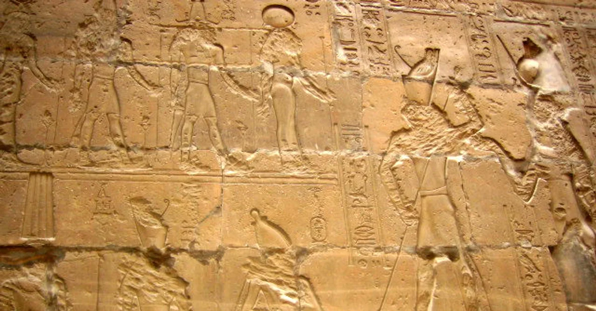 A scene depicting Horus' victory over Set from the Temple of Horus at Edfu, built in the Ptolemaic Period.
