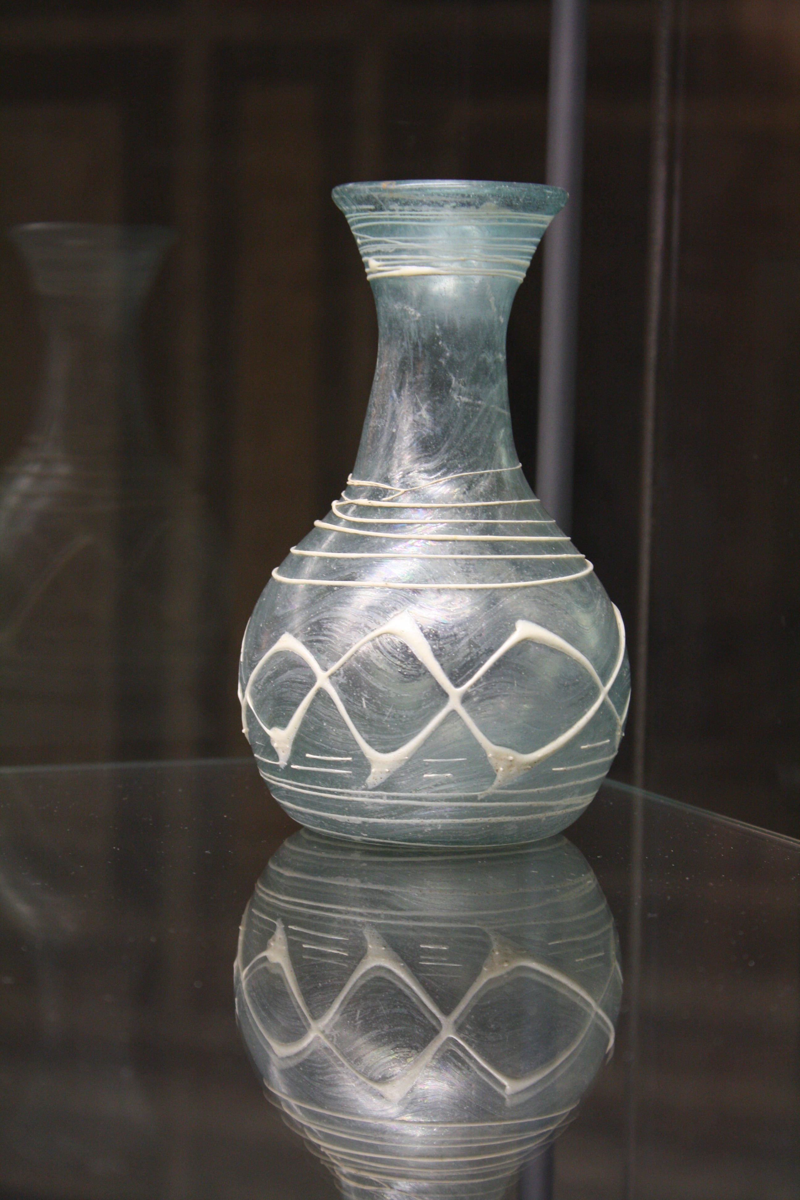 Roman glass bottle. 1st-2nd century CE. Provenance unknown. (Archaeological Museum of Pavia, Italy).