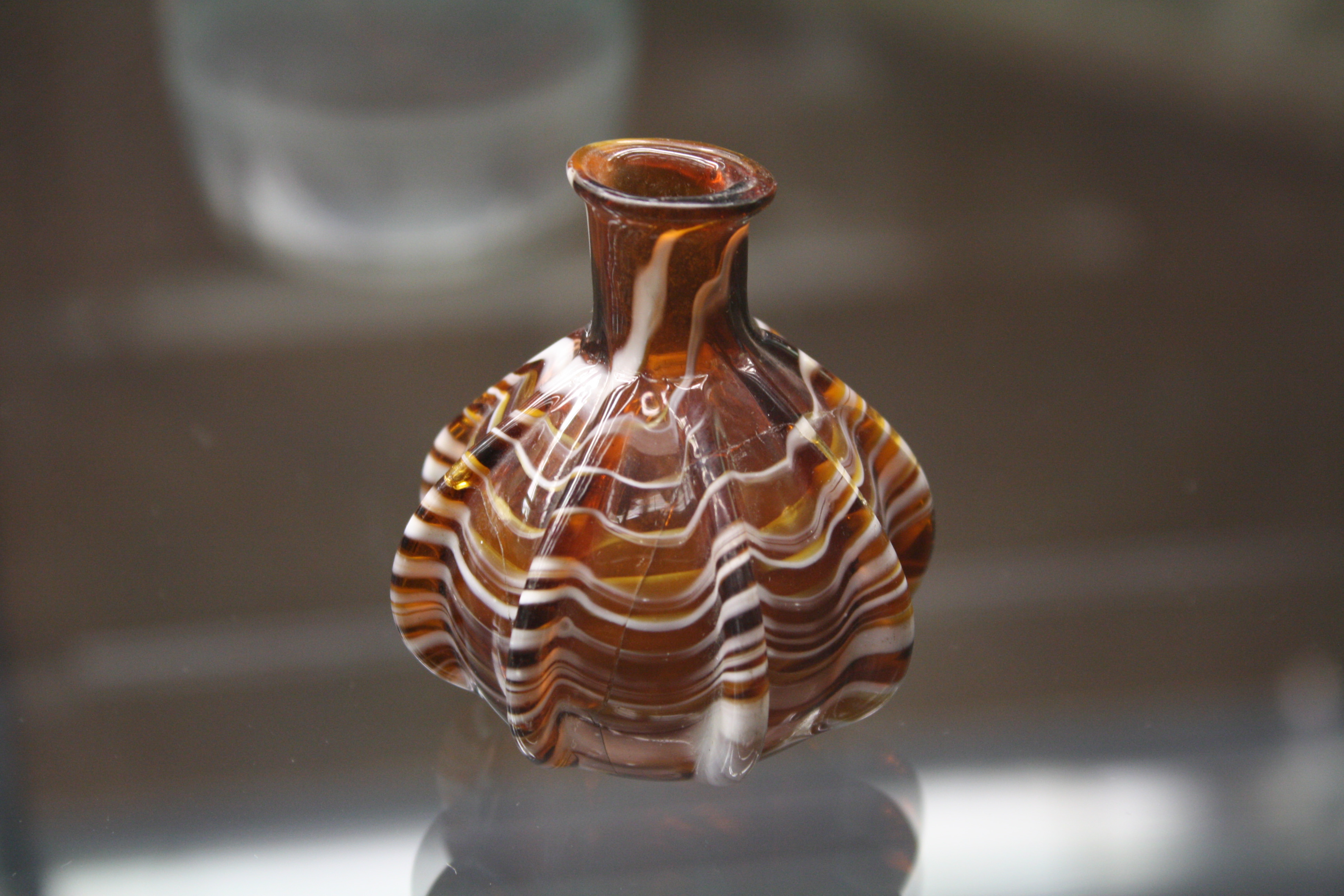 Roman glass perfume bottle. 1st-2nd century CE. Provenance unknown. (Archaeological Museum of Pavia, Italy).