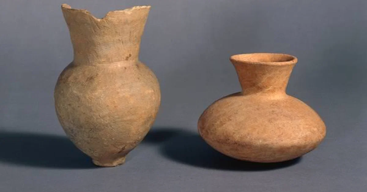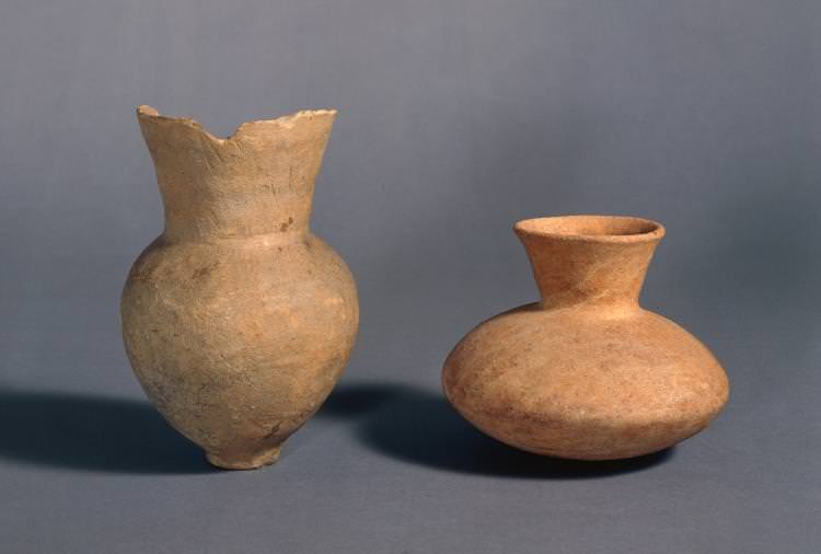 Unglazed, hand-made red pottery vases from the Late Yayoi Period, 1st-2nd century CE Japan.