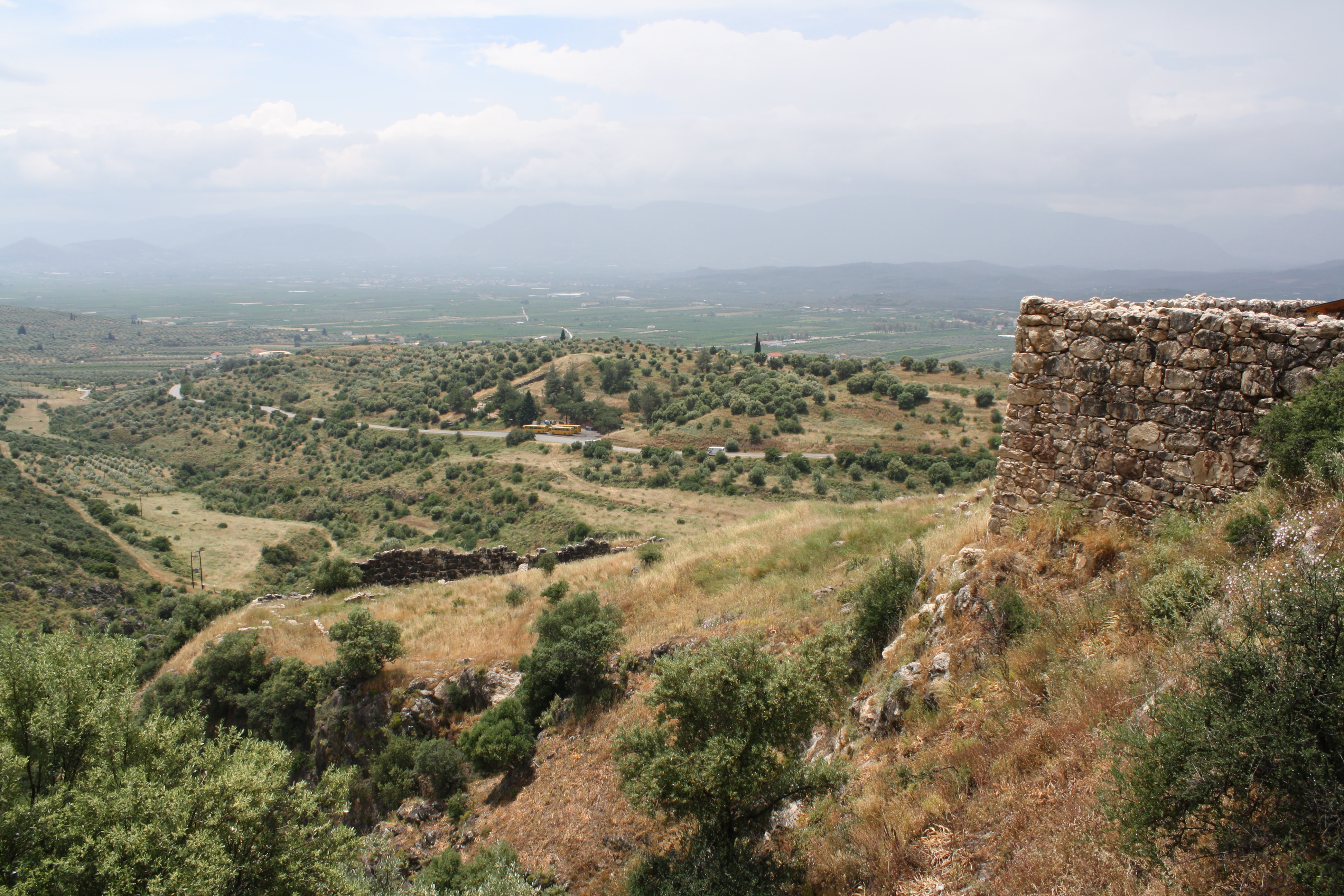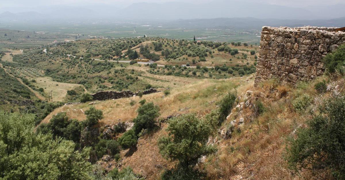 The view to the south from the upper citadel of Mycenae looking towards Argos (1350 BCE).