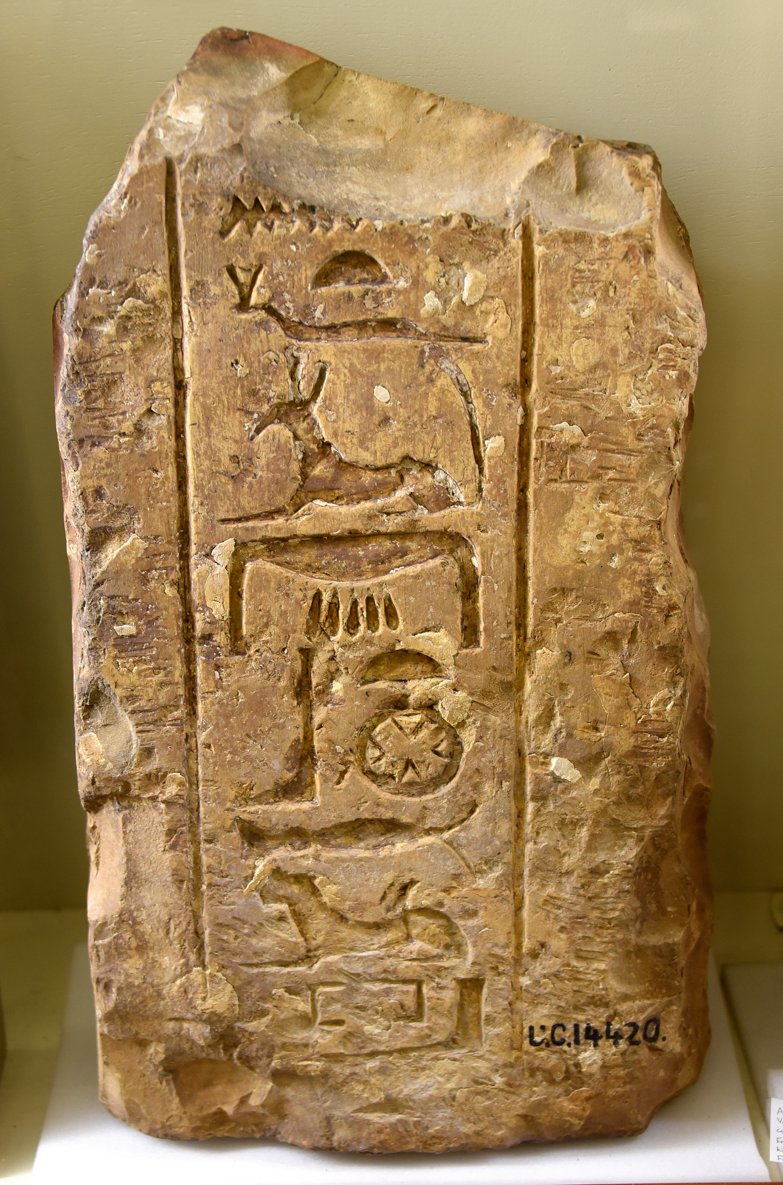 Limestone fragment of a door jamb from the temple of Seth (built by the Egyptian pharaoh Thutmose III) at Ombos (Naqada), Egypt, 18th Dynasty, 1543-1292 BCE.