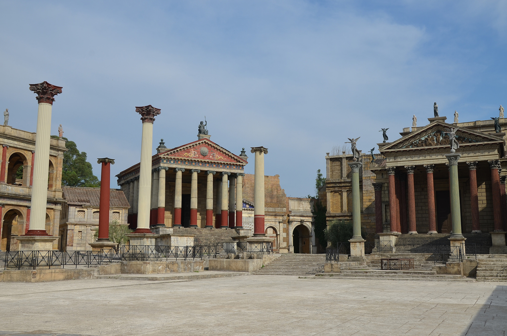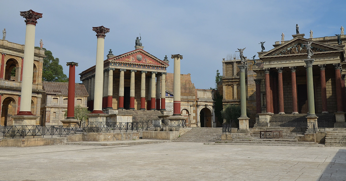 This is the set of the TV series “Rome” showing the Roman Forum that you can visit at the Cinecittà studios in Rome. The series was filmed in various locations, but most notably in Cinecittà.