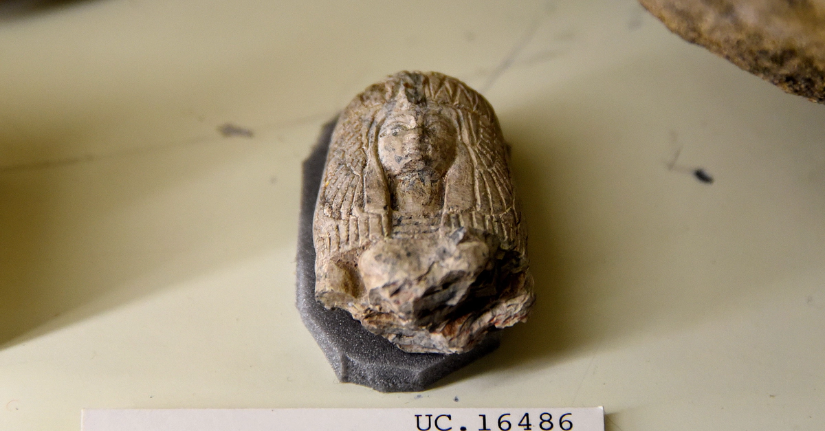 This is the upper part of steatite figurine of queen AHMOSE-NEFERTARI, the patroness of the Theban Necropolis. She wears the vulture headdress. From Egypt, precise provenance of excavation is unknown. 19th Dynasty, circa 1292 to 1187 BCE. The Petrie Museum of Egyptian Archaeology, London (with thanks to The Petrie Museum of Egyptian Archaeology, UCL).