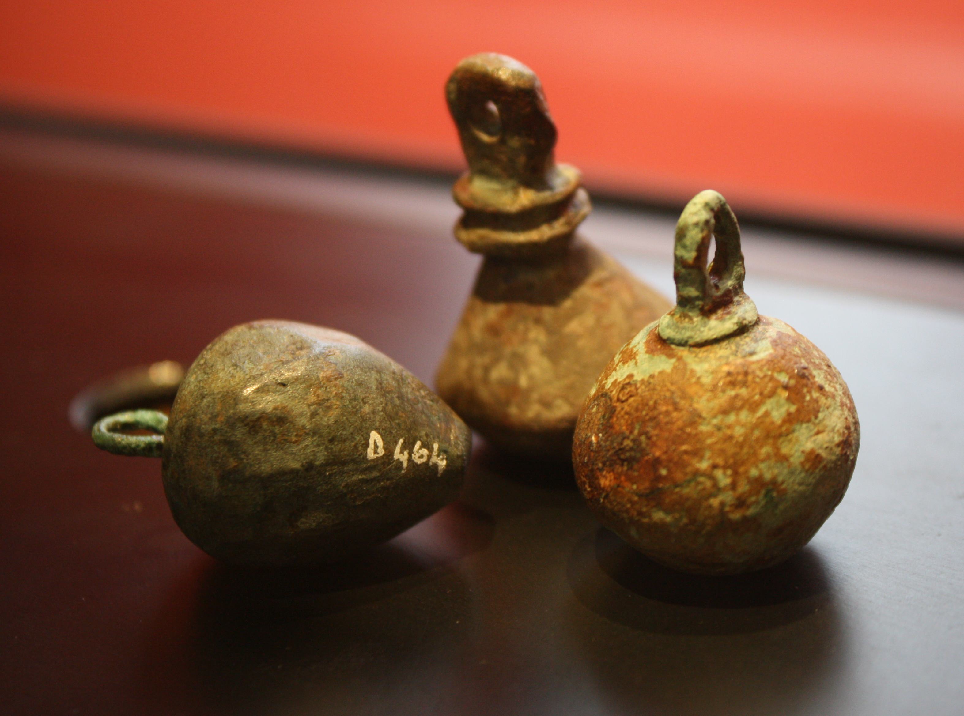 Roman bronze balance weights. Probably used by a goldsmith or chemist. Imperial period. (Archaeological Museum, Como, Italy)