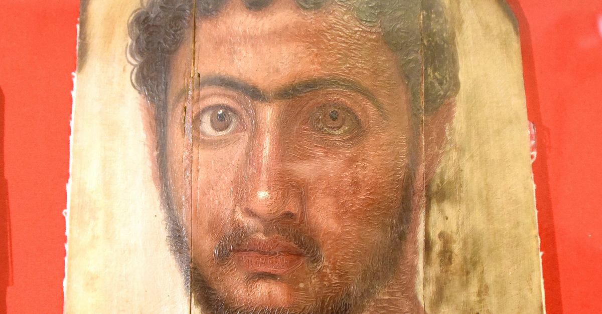 Mummy portrait of a man known as Petrie's "red youth" from Hawara cemetery, Egypt. 1st-2nd centuries CE.
