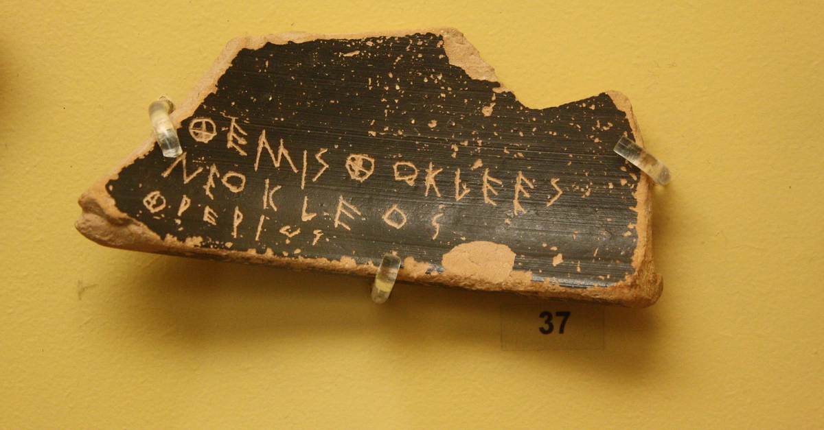 Cartwright, M. (2016, March 24). Ostrakon for Themistocles. World History Encyclopedia. https://www.worldhistory.org/image/4782/ostrakon-for-themistocles/
