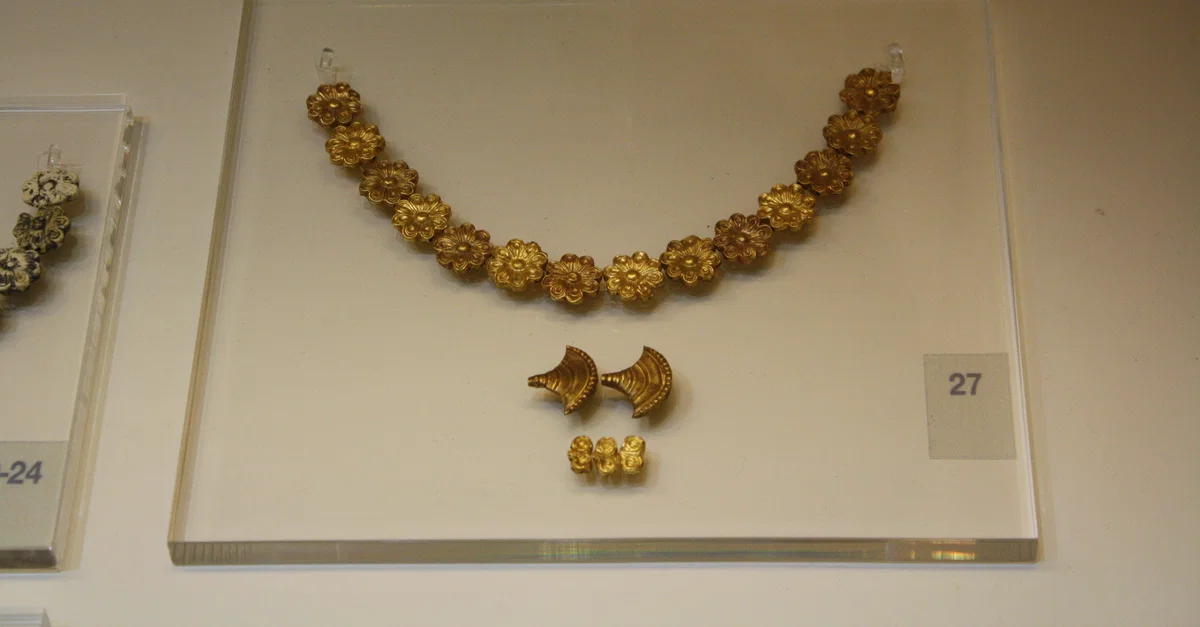 Cartwright, M. (2012, April 26). Mycenaean Gold Jewellery Pieces. World History Encyclopedia. https://www.worldhistory.org/image/479/mycenaean-gold-jewellery-pieces/