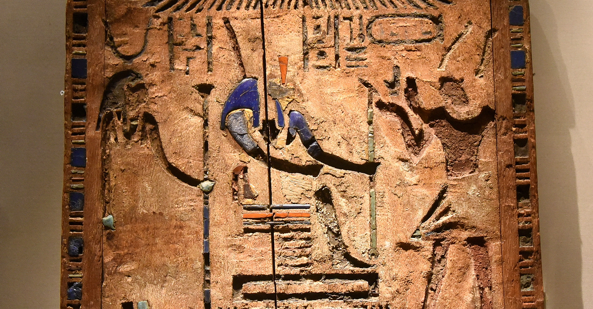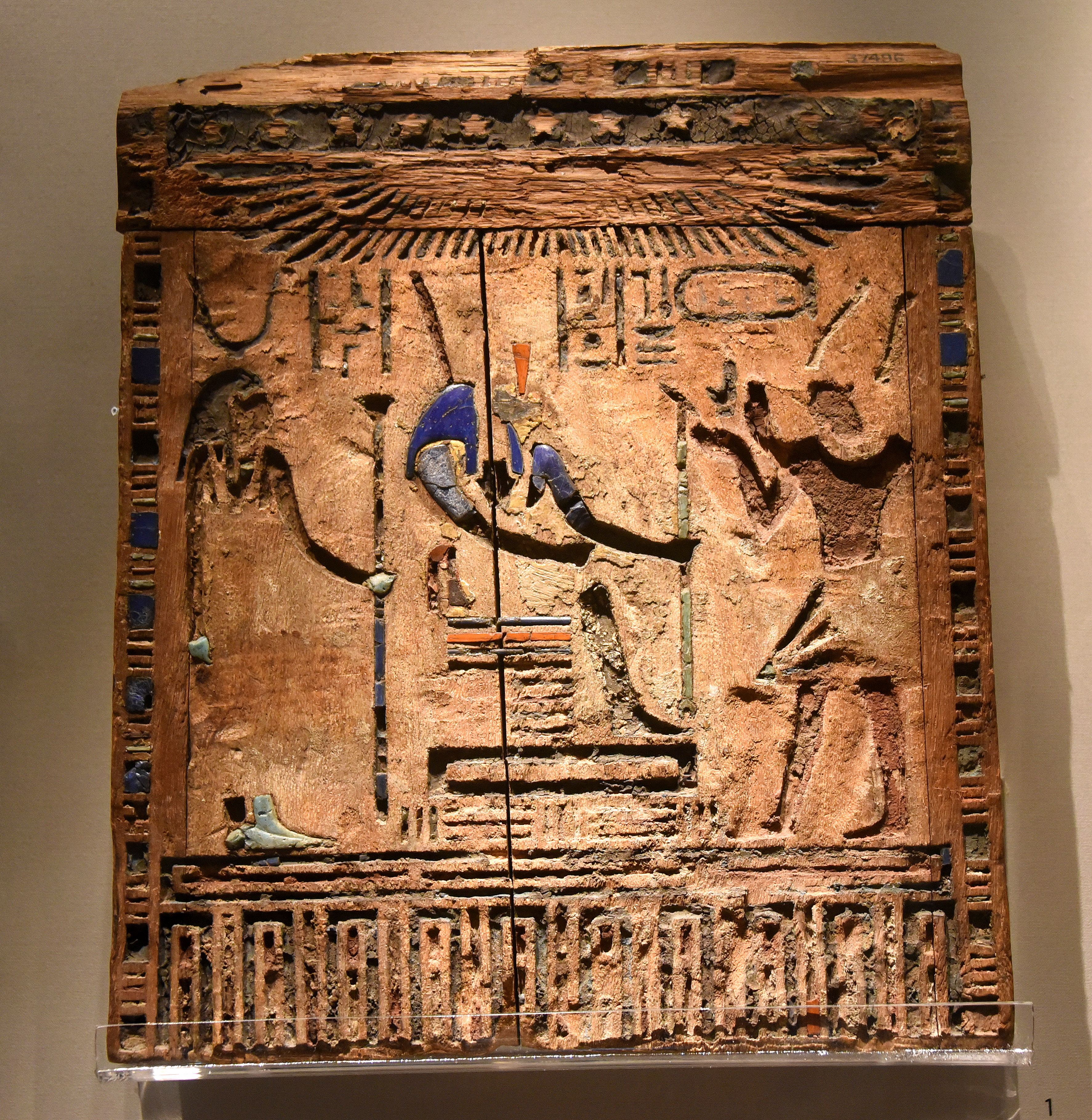 This wooden door shows Darius I (reigned 521-486 BCE) dressed as pharaoh on the right, making an offering to the Egyptian god Anubis. The goddess Isis stands on the left. The door originally belonged to a box (or naos) used to contain statuettes and must have been from a temple. The box would have been covered with sheet gold and inlaid with red and blue glass. From Egypt. 27th Dynasty, 522-486 BCE. (The British Museum, London)