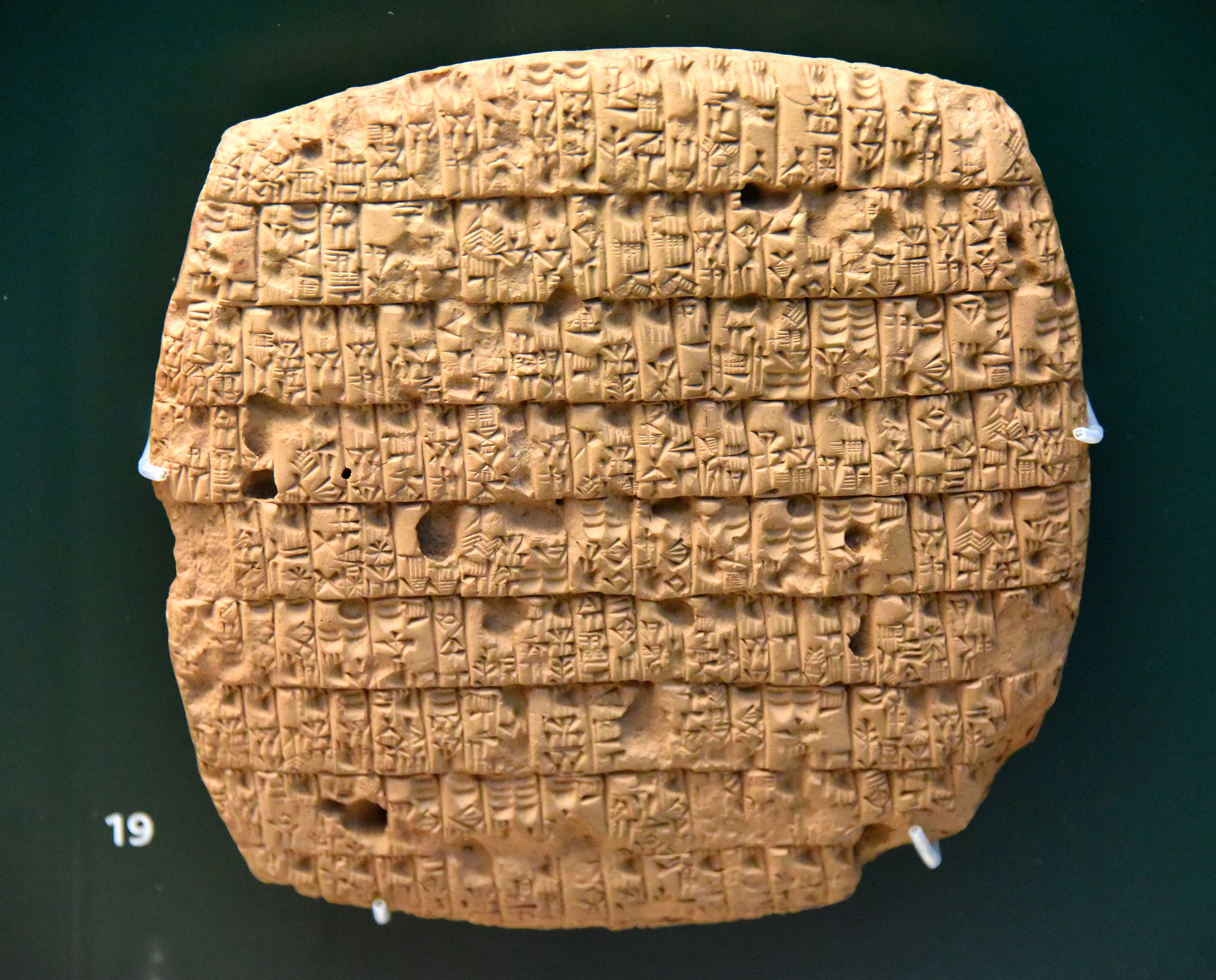 Adult workers received standard rations of 30 to 40 pints of barley per month while children received 20; the barley was distributed as rations to about 200 workmen and their children. This scribe was clearly highly trained in this art. From Girsu, Mesopotamia, Iraq. Early Dynastic III, year 4 of King Uruinimgina of Lagash, circa 2351-2342 BCE. (The British Museum, Iraq)
