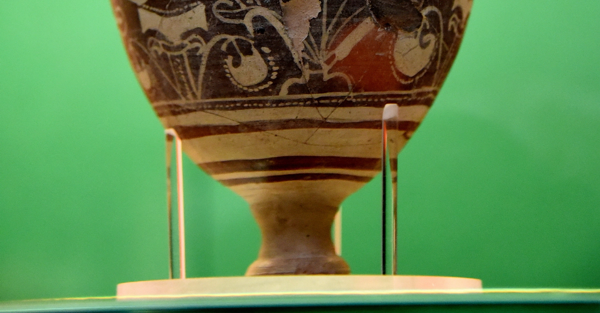 This fine decorated pottery takes its name from the modern name of Tell Atchana, Alalakh. It was defined by the excavator Sir L. Woolley as a locally produced variant of the so-called "Nuzi Ware", a similarly fine and elaborated decorated pottery first recognized at the site of Nuzi in Iraq. Characteristic of the Atchana ware are the floral designs which are unmatched in the Nuzi ware. From Levels III-II, Tell Atchana, Hatay, modern-day Turkey. Late Bronze age, circa 1370-1270 BCE. (The British Museum, London)