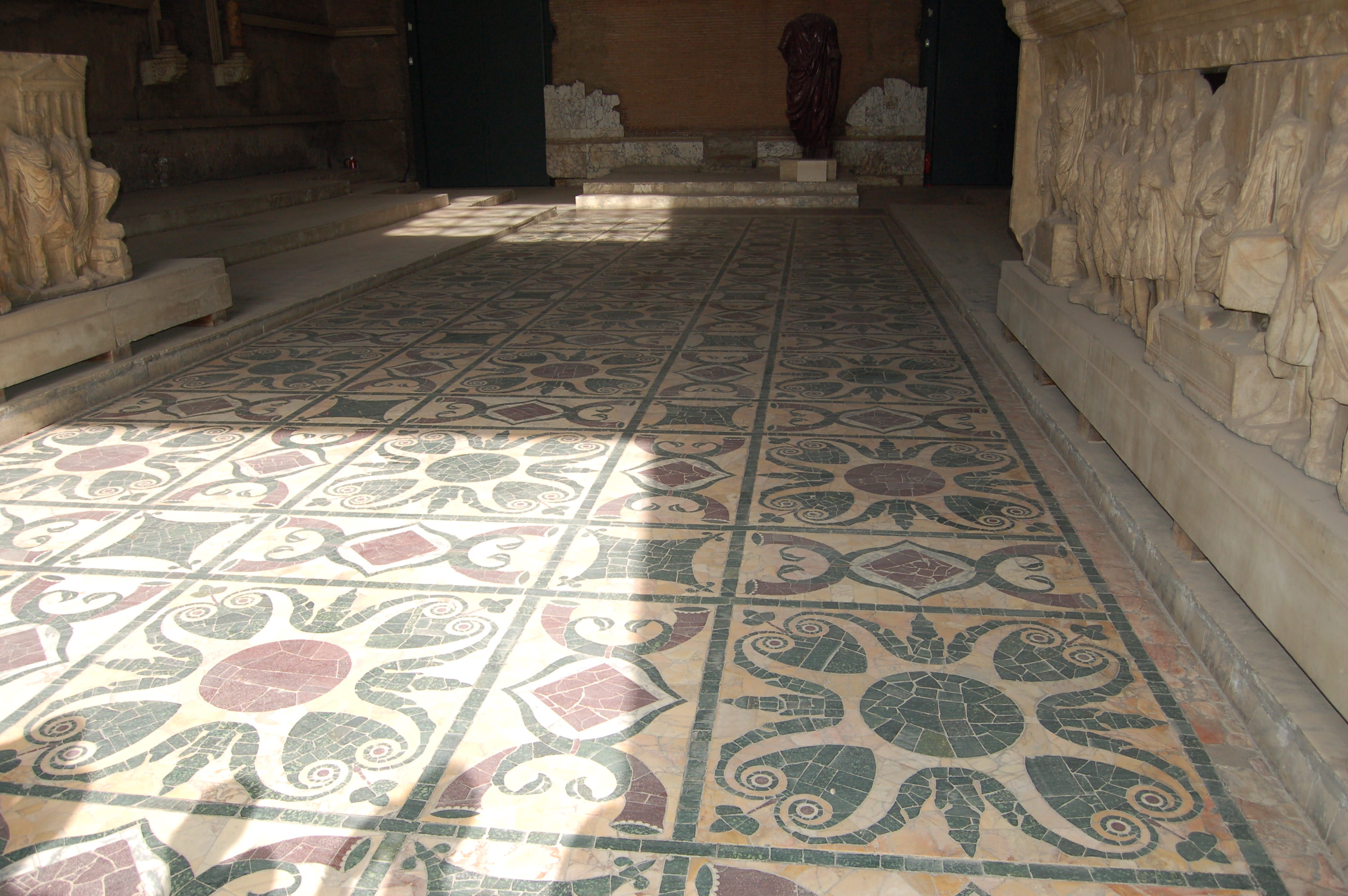 Detail of the mosaic floor of the Curia. Just inside the doors of the Curia in the Forum Romanum.