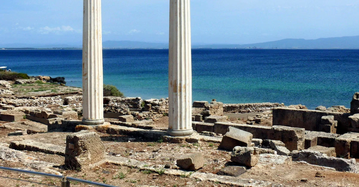 Two standing Roman columns on Tharros, Sardinia, originally a Phoenician colony.