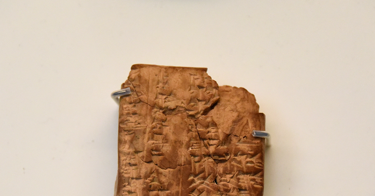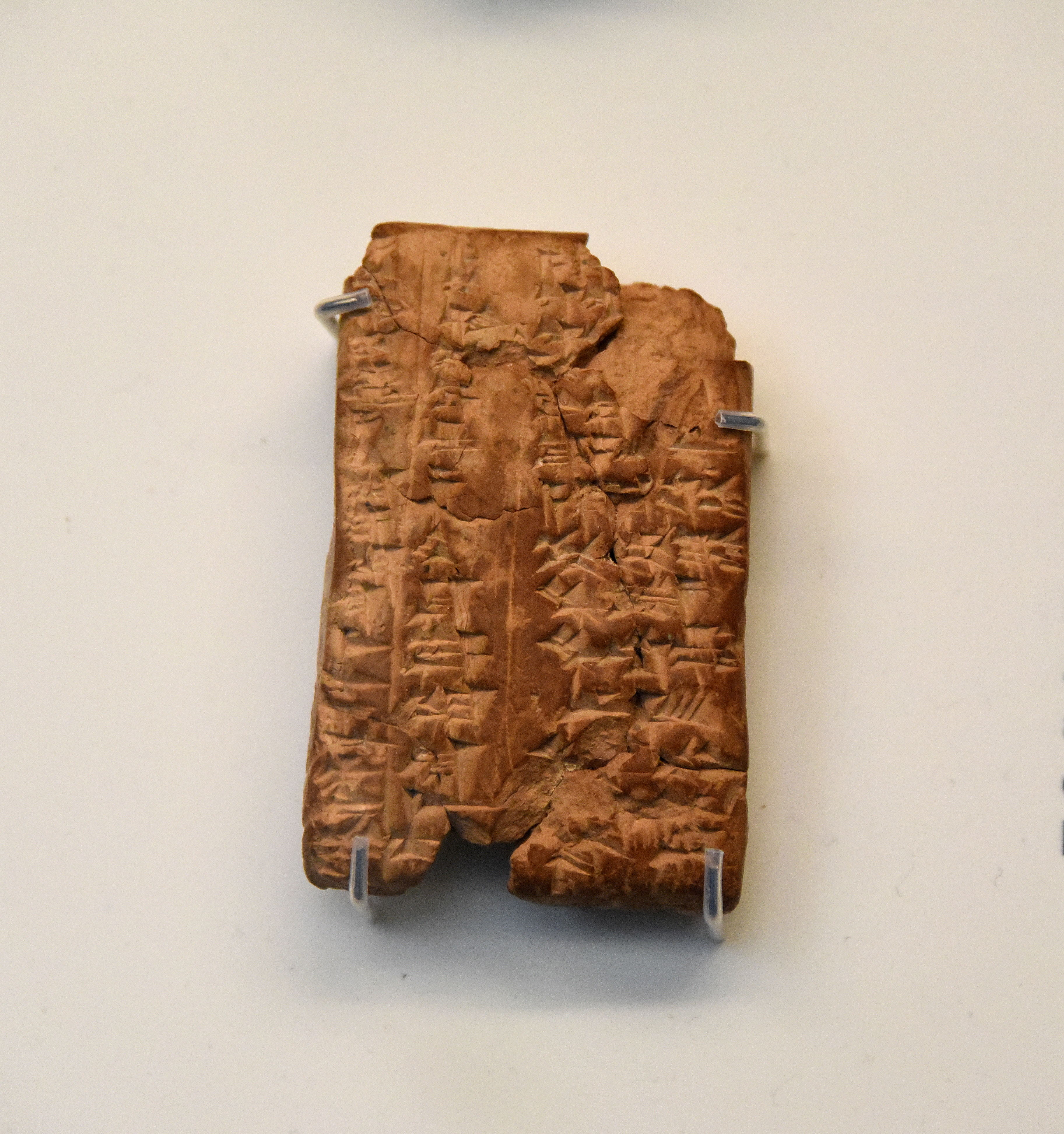This is a classroom experiment. As Babylon grew, the language spoken on its streets changed. This remarkable tablet captures interaction between the age-old cuneiform writing for Babylonian Akkadian and the alphabetic Aramaic that ultimately displaced it. Here a teacher imposed a challenging writing exercise on pupils who spoke both languages. They had to use traditional cuneiform syllabic signs to express the sound of the Aramaic alphabet. The letter order is the same as that of the modern Hebrew alphabet. From Southern Mesopotamia, Iraq. Circa 500 BCE. (The British Museum, Iraq)
