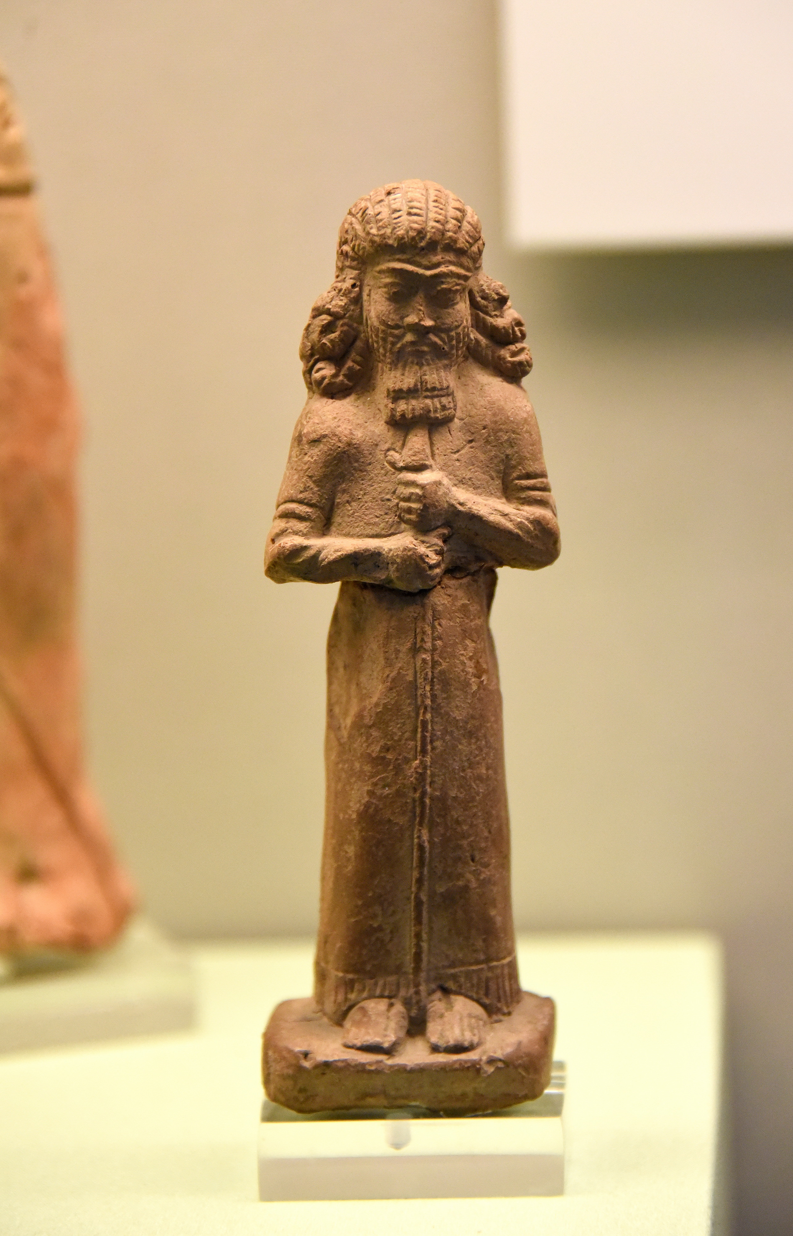 Lahmu was a minor god associated with the god Ea. Ritual texts prescribe that such figures be buried in the corners of a room and in the courtyard. From Nineveh, Northern Mesopotamia, Iraq. Neo-Assyrian Period, 900-612 BCE. (The British Museum, London)