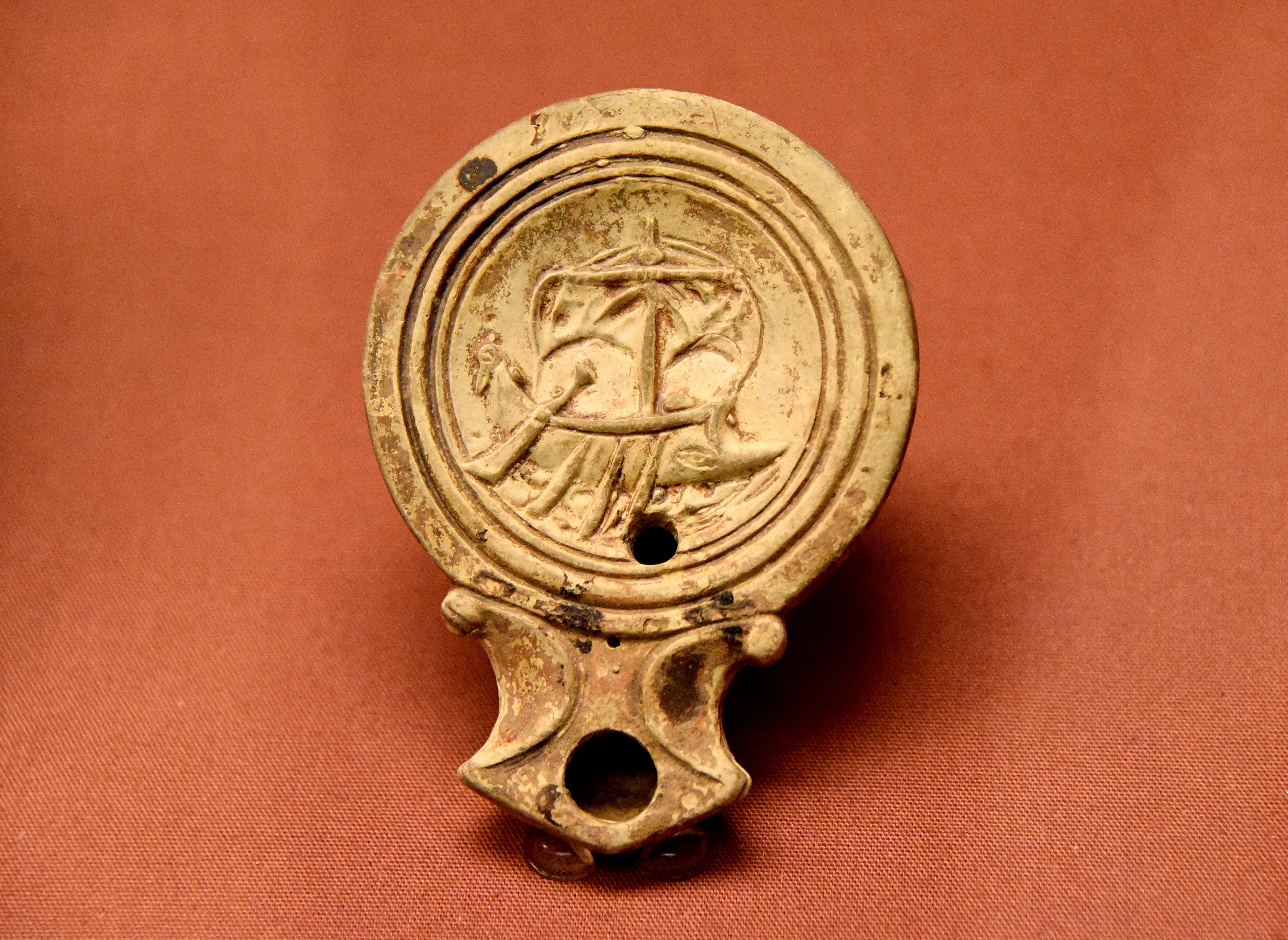 Vessels like the ship on this lamp were used by the British fleet whose duties included reconnaissance, warfare, and transport. From Colchester, Essex, UK. 1st century CE. The British Museum, London.