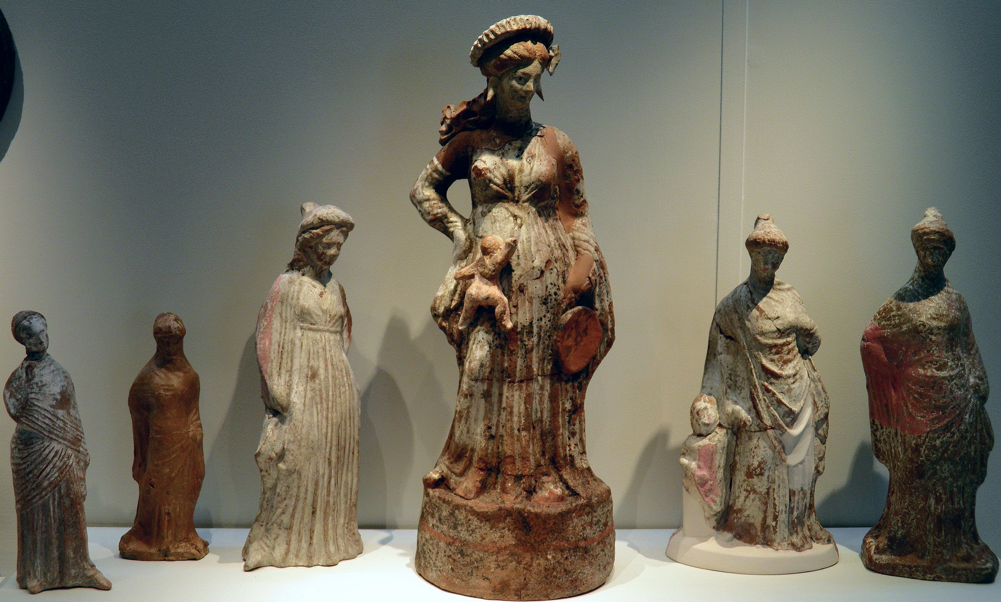 Terracotta figurines of women with their ordinary clothes and adornments, 2nd century BCE (Pella Archaeological Museum).