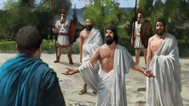 An artist's rendition of what a diplomatic mission may have looked like in the ancient Greek world.