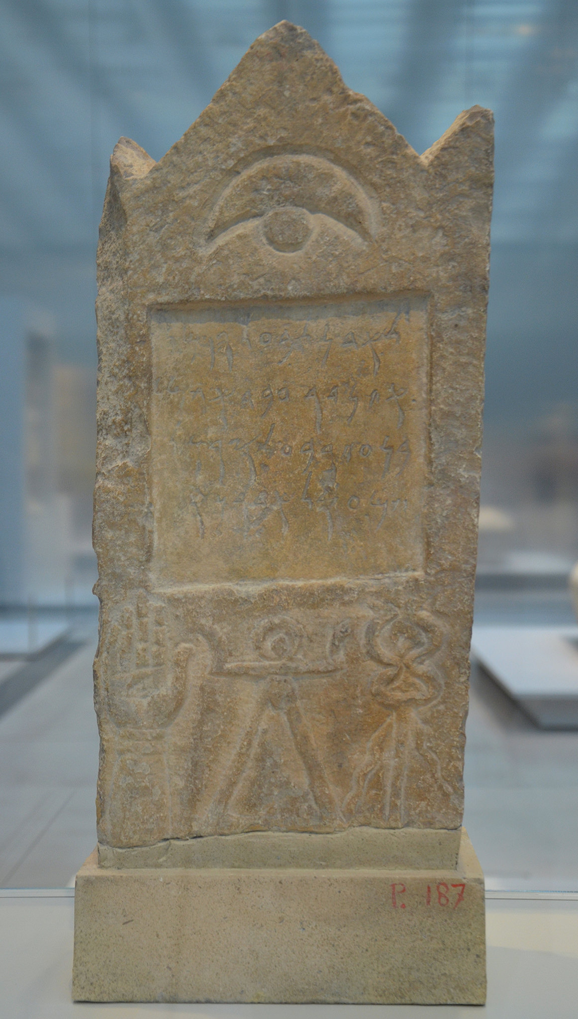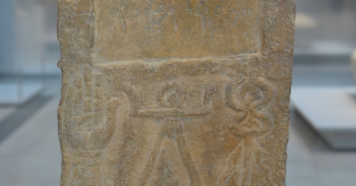 Punic stele with a crescent moon and the sign of the Phoenician goddess of fertility Tanit, found in Cirta (ancient Constantine, Algeria), around 300-200 BCE. Now in Louvre Lens, France.