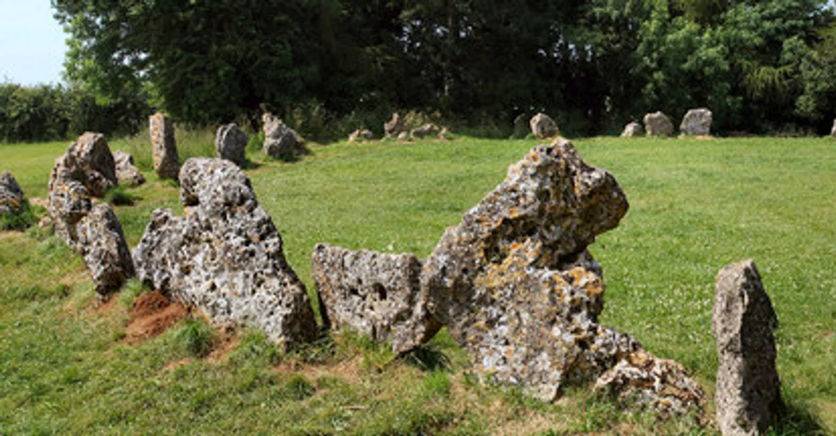 Part of the Rollright Stones complex, the King’s Men, a circle of about seventy stones, probably date to c. 2500 BCE.