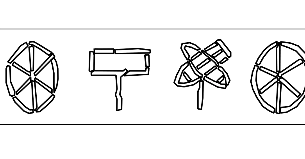 The 10 Harappan alphabets/signs found at the Northern Gate of the ancient Indus Valley Civilization city of Dholavira. Each of these are up to 37 cm high and are thought to have been hung as a 'Banner' on the city gate.