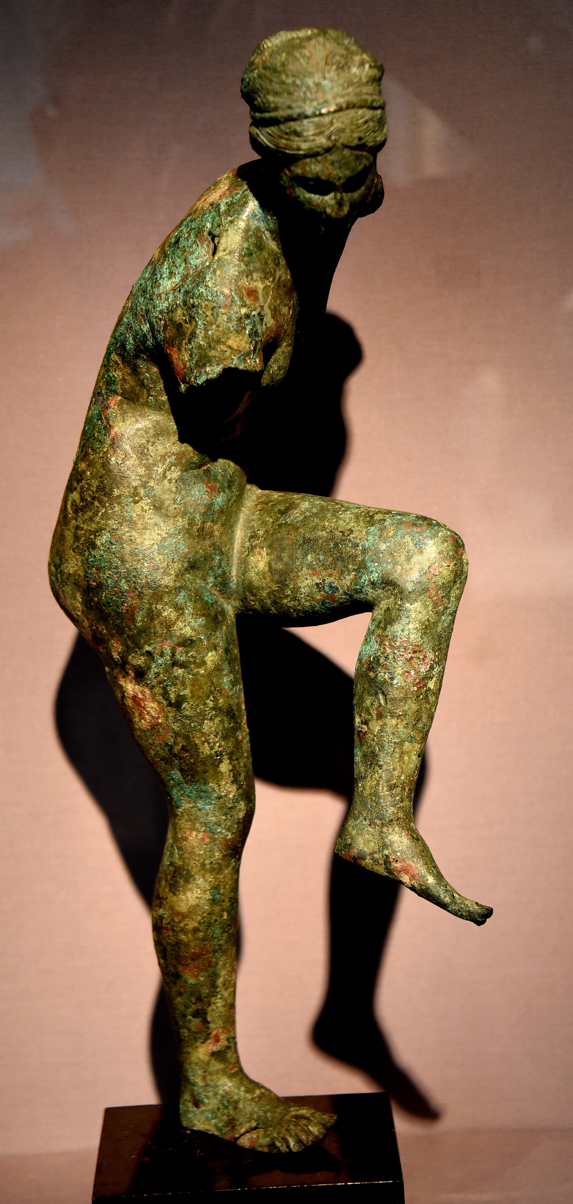 This is a marvelous bronze figure which depicts Aphrodite stooping to remove her sandal. This is one of the largest and finest of all versions of this popular type of Aphrodite. Said to be from near Patras. Circa 200-100 BCE. (The British Museum, London)